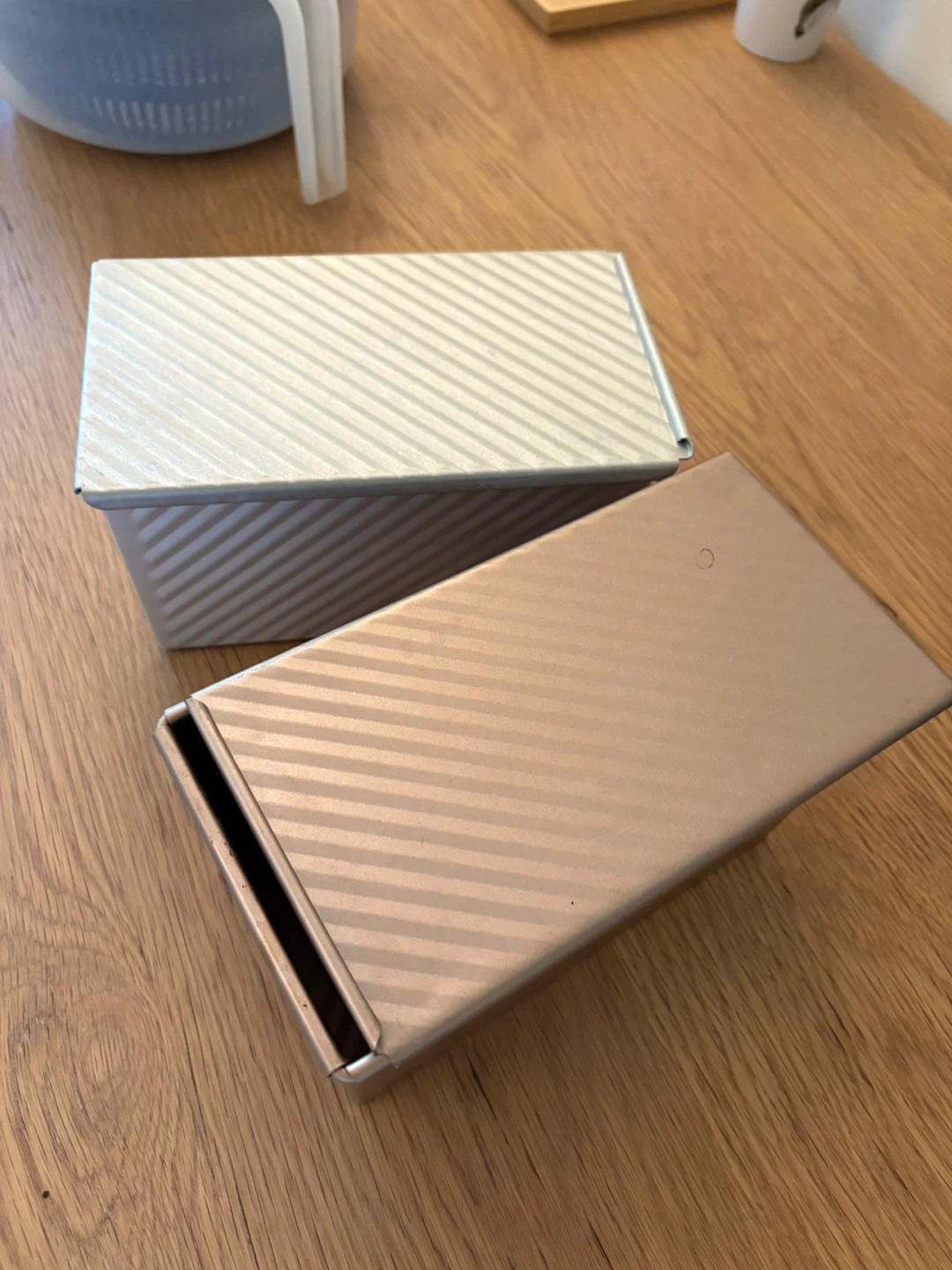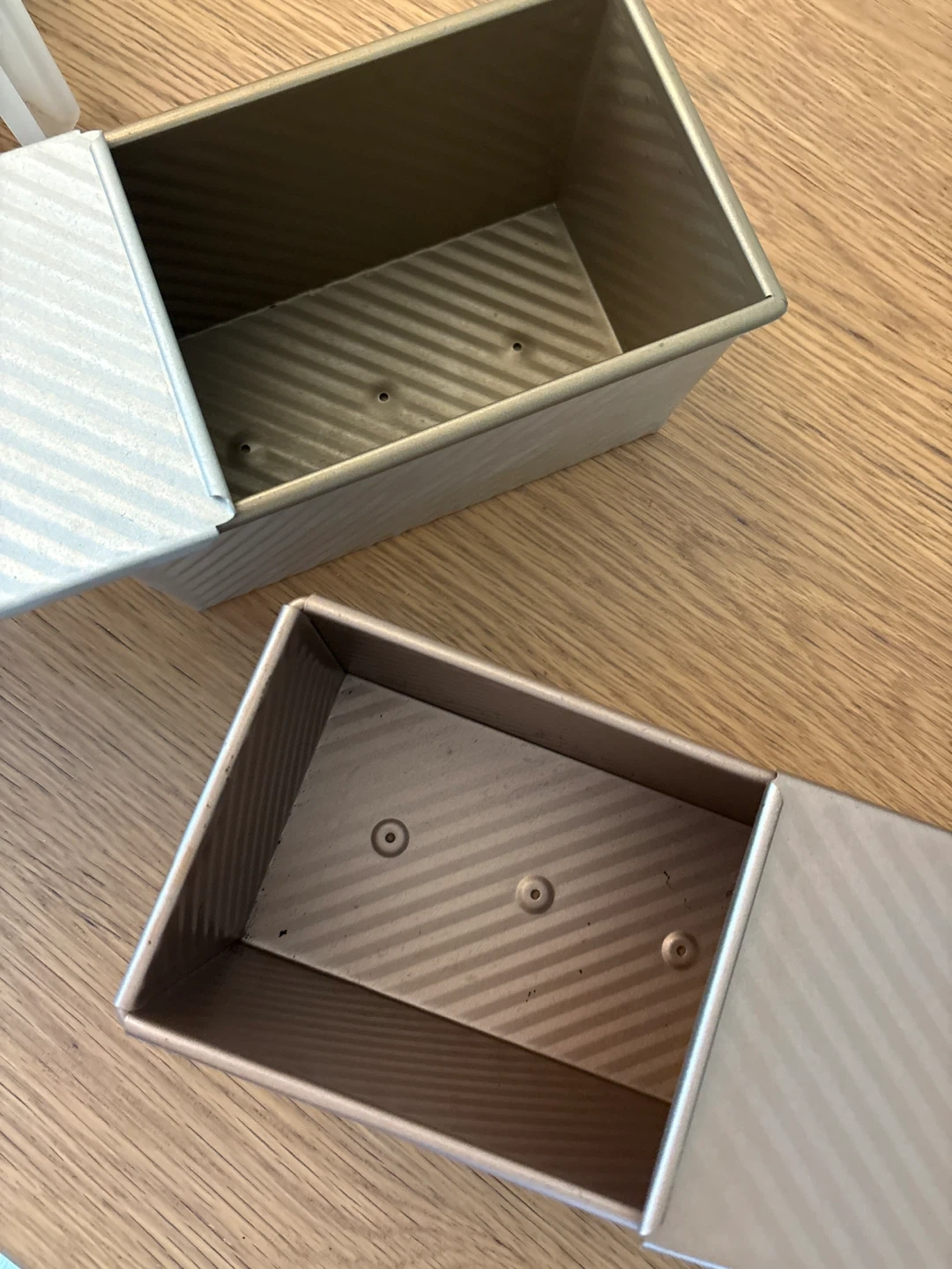 Selling a set of two bread loaf pans. One is a silver colour and the other is a rosegold colour. Used 2 times-no stain no burns!