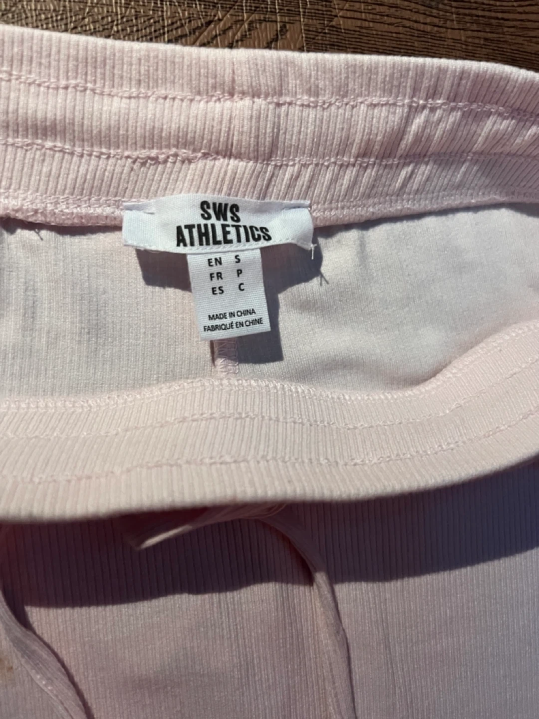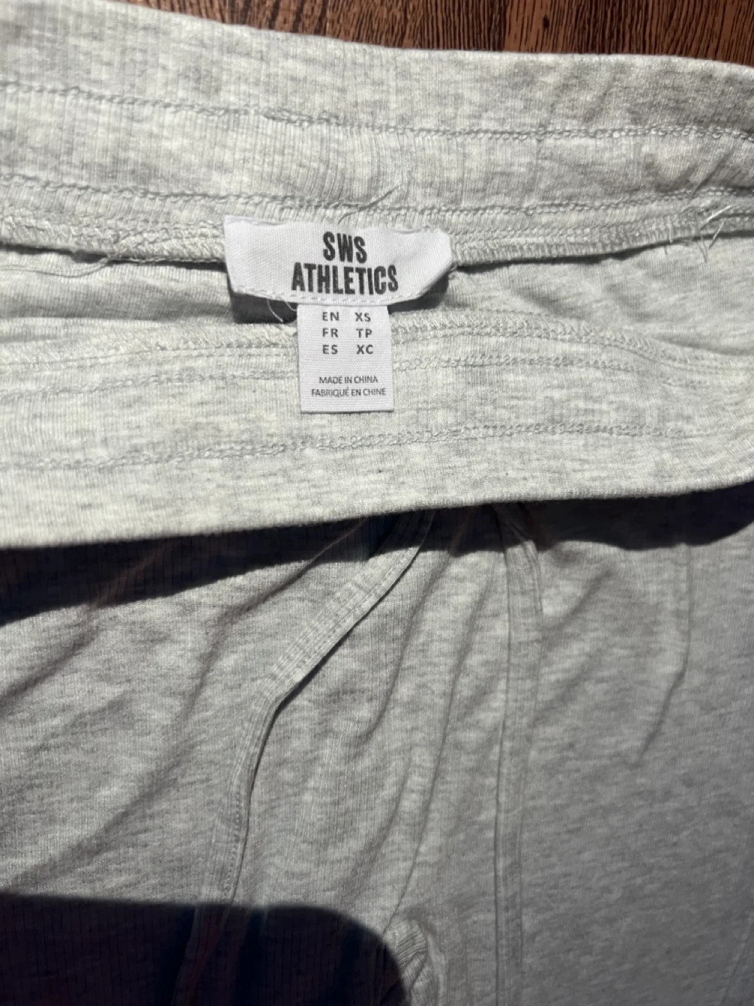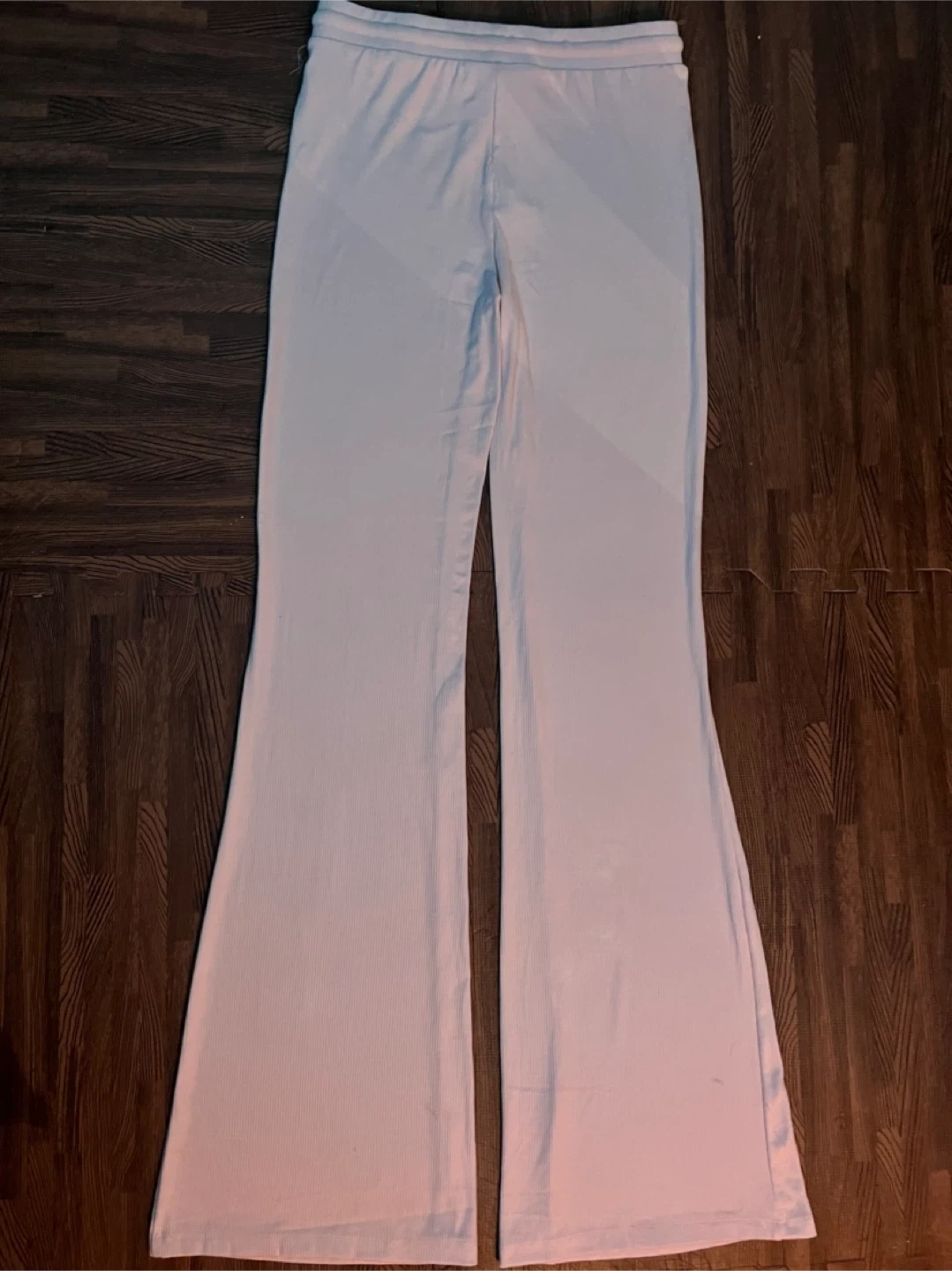 Both are super comfy and have that cute flared fit that looks really flattering on. The baby pink small pair is perfect if you like a soft, girly vibe, and the grey Xs pair goes with literally anything. both in amazing condition 15$ each or both for $30