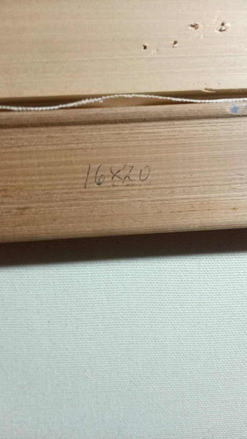 This is an original oil painting titled "Through The Lilies" by artist B.F. McAdam. The painting measures 16x20 inches. It's framed and comes from the Sasaki Art Gallery.