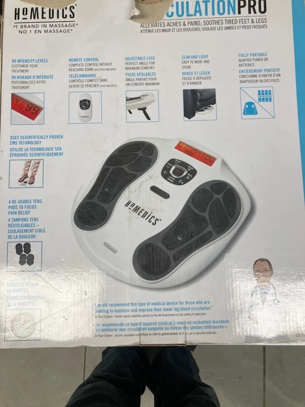 This HoMedics Circulation Pro helps alleviate aches and pains while soothing tired feet and legs. It uses scientifically proven EMS technology with 99 intensity levels and includes 4 reusable TENS pads. Benefits can be felt within 10 minutes of use.
