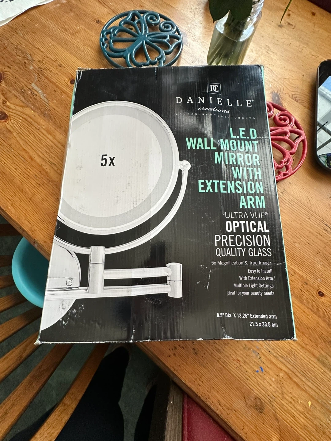DANIELLE CREATIONS L.E.D. wall mount mirror with extension arm. It features 5x magnification and ultra vue optical precision quality glass. The mirror has an 8.5" dia. with a 13.25" extended arm length. Easy to install with multiple light settings ideal for your beauty needs! I have 2 of these. Pick up in Chestermere