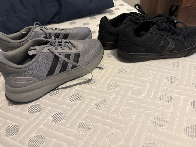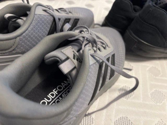 Selling a pair of used Adidas Cloudfoam running shoes in a stylish grey colour, perfect for your fitness needs. These shoes have been worn, but they're still in good condition, ready to provide comfort and support for your workouts. Brand: Adidas, Model: Cloudfoam, Colour: Grey, Condition: Used, but in good shape. Cash accepted.