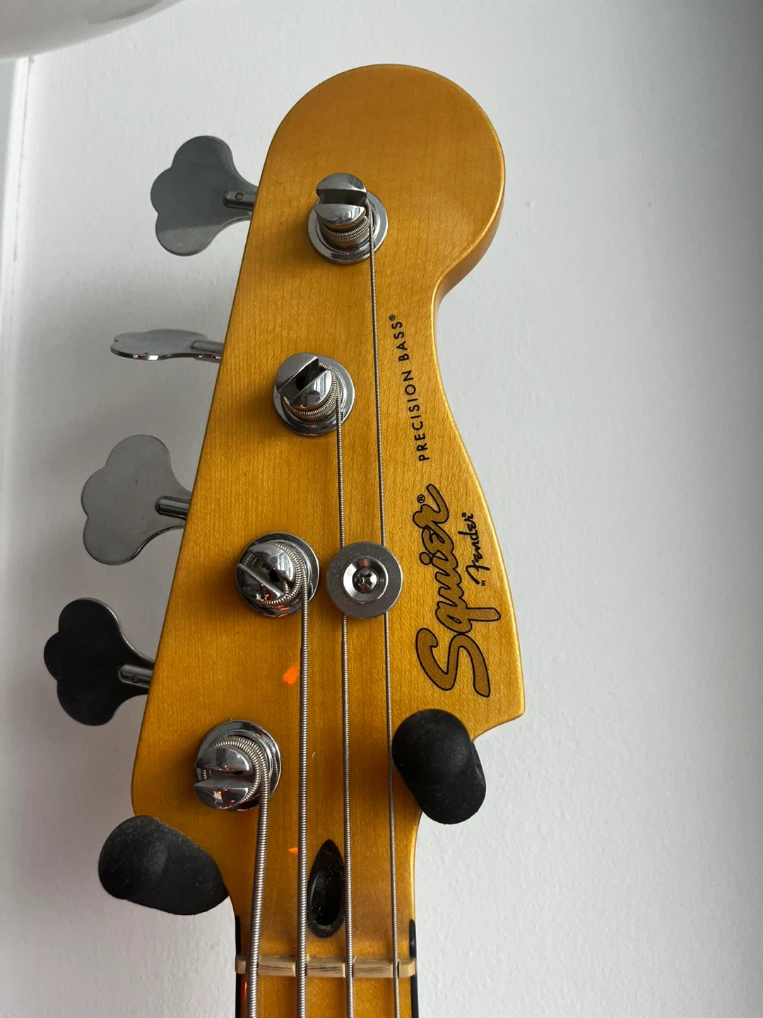 This is a Squier Precision Bass guitar. It's black with a maple neck. Great for any musician! Only used for a month, can sell with bass too. Dm me for more info.