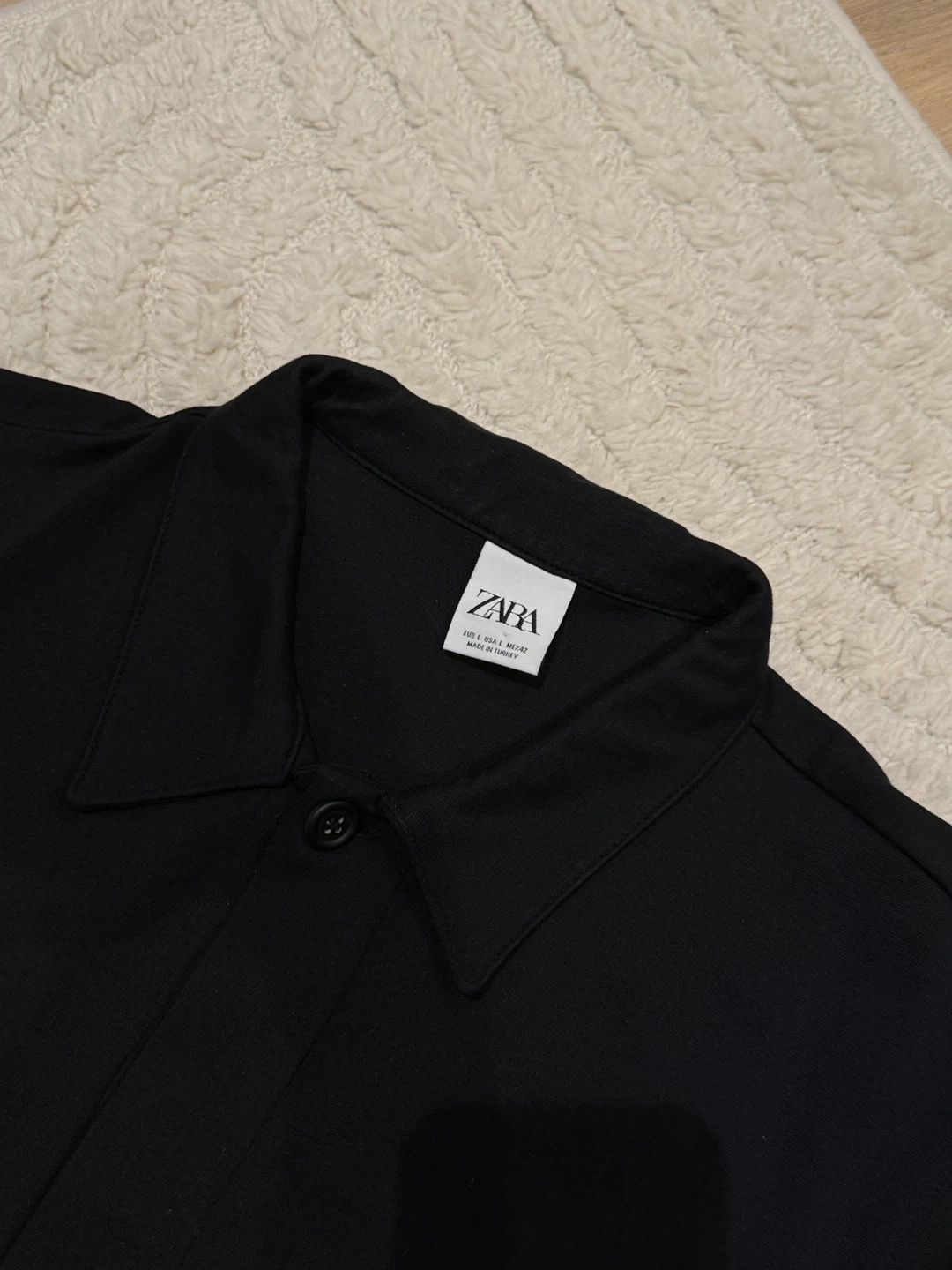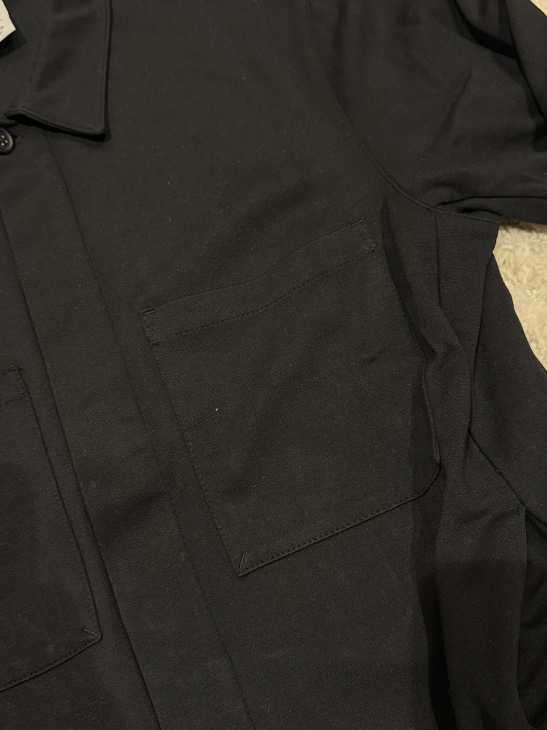 This black long sleeve shirt jacket from Zara has a button-up front and two chest pockets. It's a versatile piece that can be worn as a light jacket or a shirt.