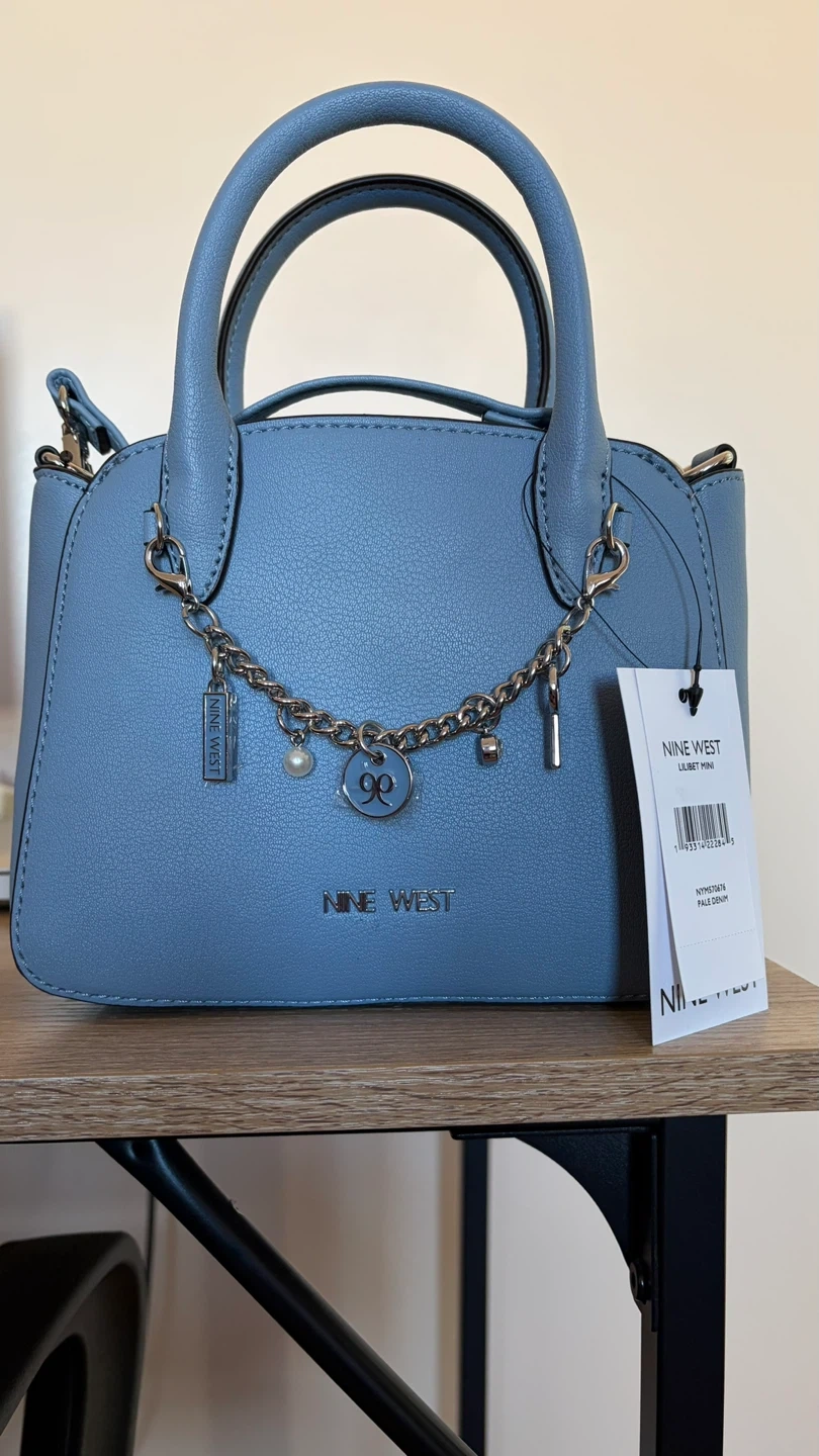 This is a cute Nine West Lilibet Mini satchel in Pale Denim color. It's a stylish and compact bag perfect for everyday use. The tag is still attached!