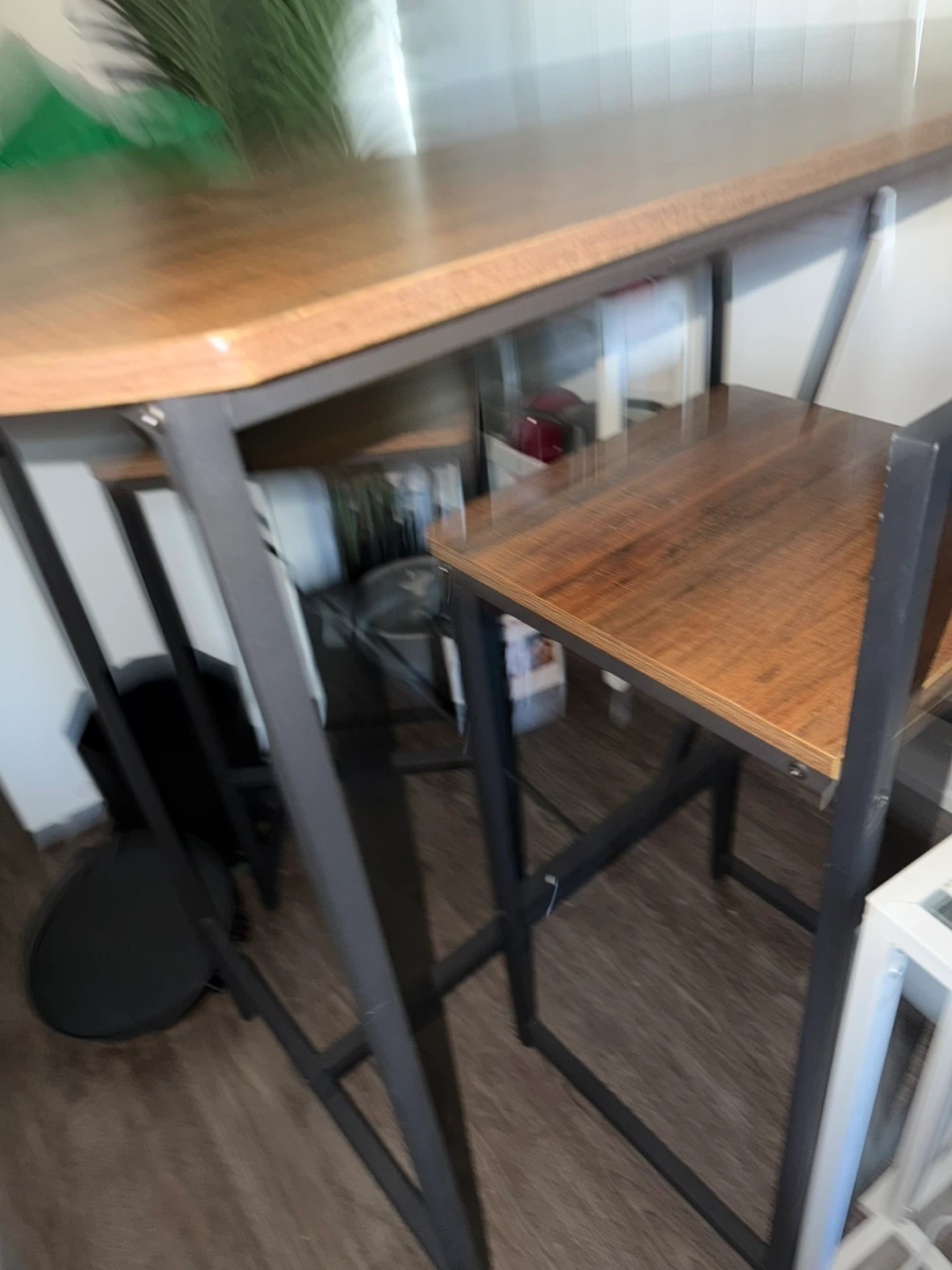 Compact Dining Set with Wooden Top and Black Frame