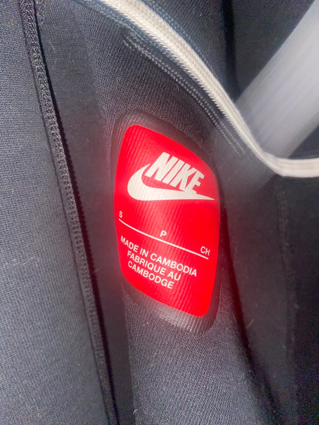 Black Nike Tech Fleece full-zip hoodie. There's a small light stain on the sleeve. That’s the only issue otherwise good condition sweater - pickup around bloor/bathurst