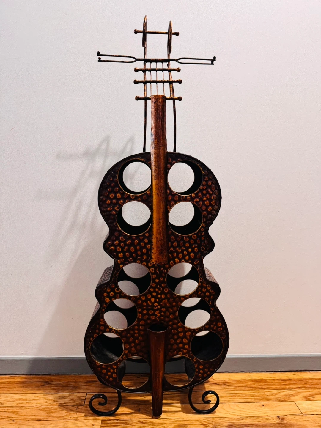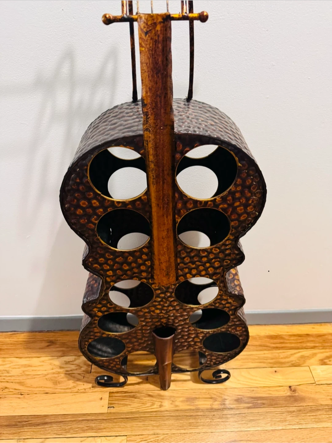 12 Bottle Cello shaped Wine Bottle & Glass Rack in Copper