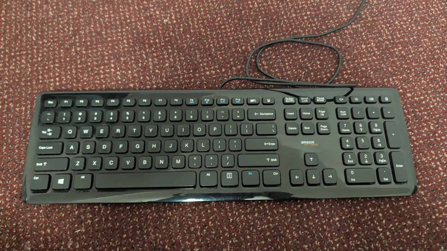 Selling an Amazon Basics wired keyboard in black. It's in great shape and ready for a new setup! Perfect for everyday use, whether you're working from home or need a reliable keyboard for your computer
