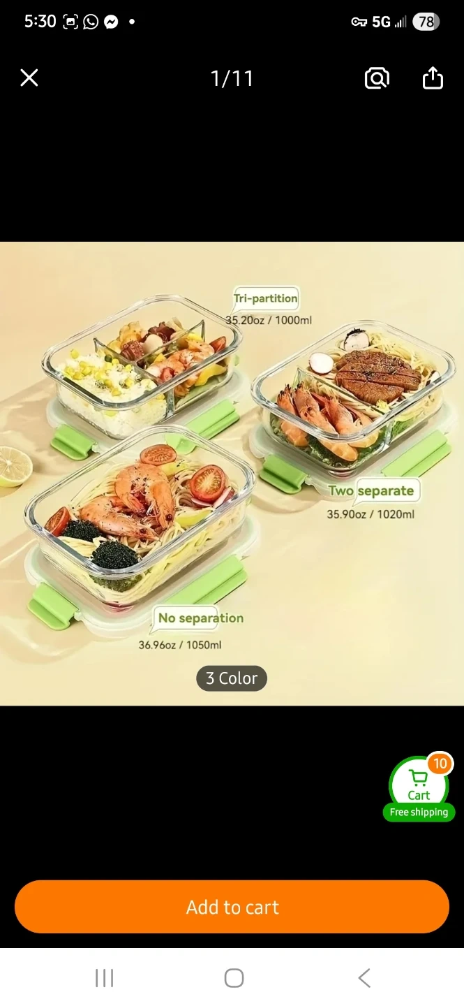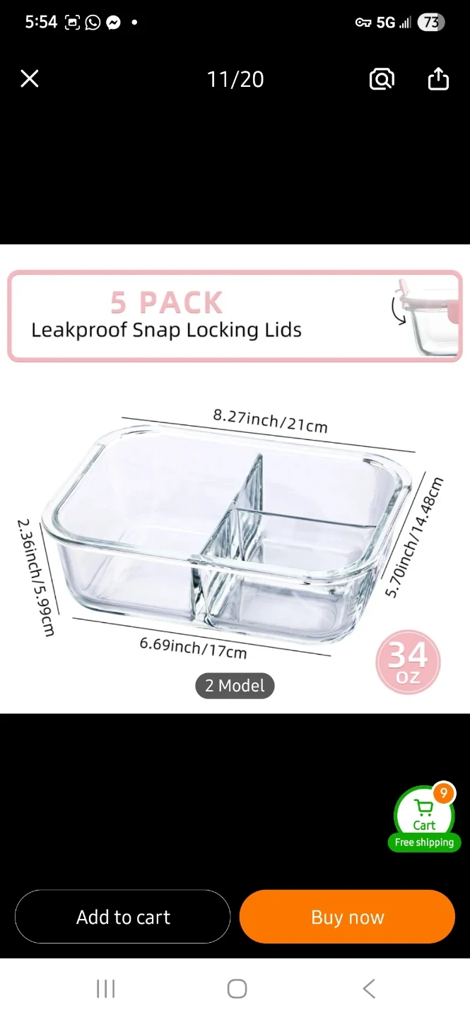These glass food storage containers are freezer, microwave, and oven safe. They come in 2 or 3-section options and have leakproof snap-locking lids. Glass material is durable and easy to clean. 5 different colours available in the set.