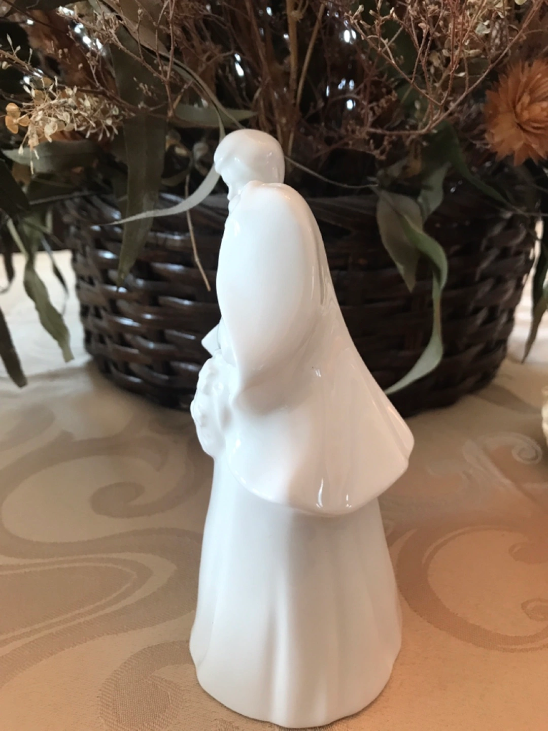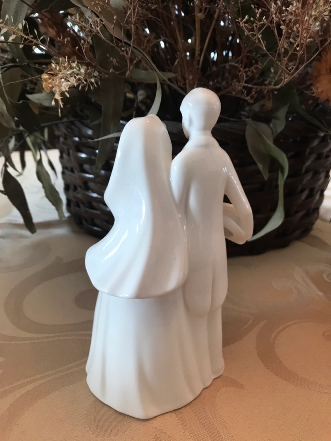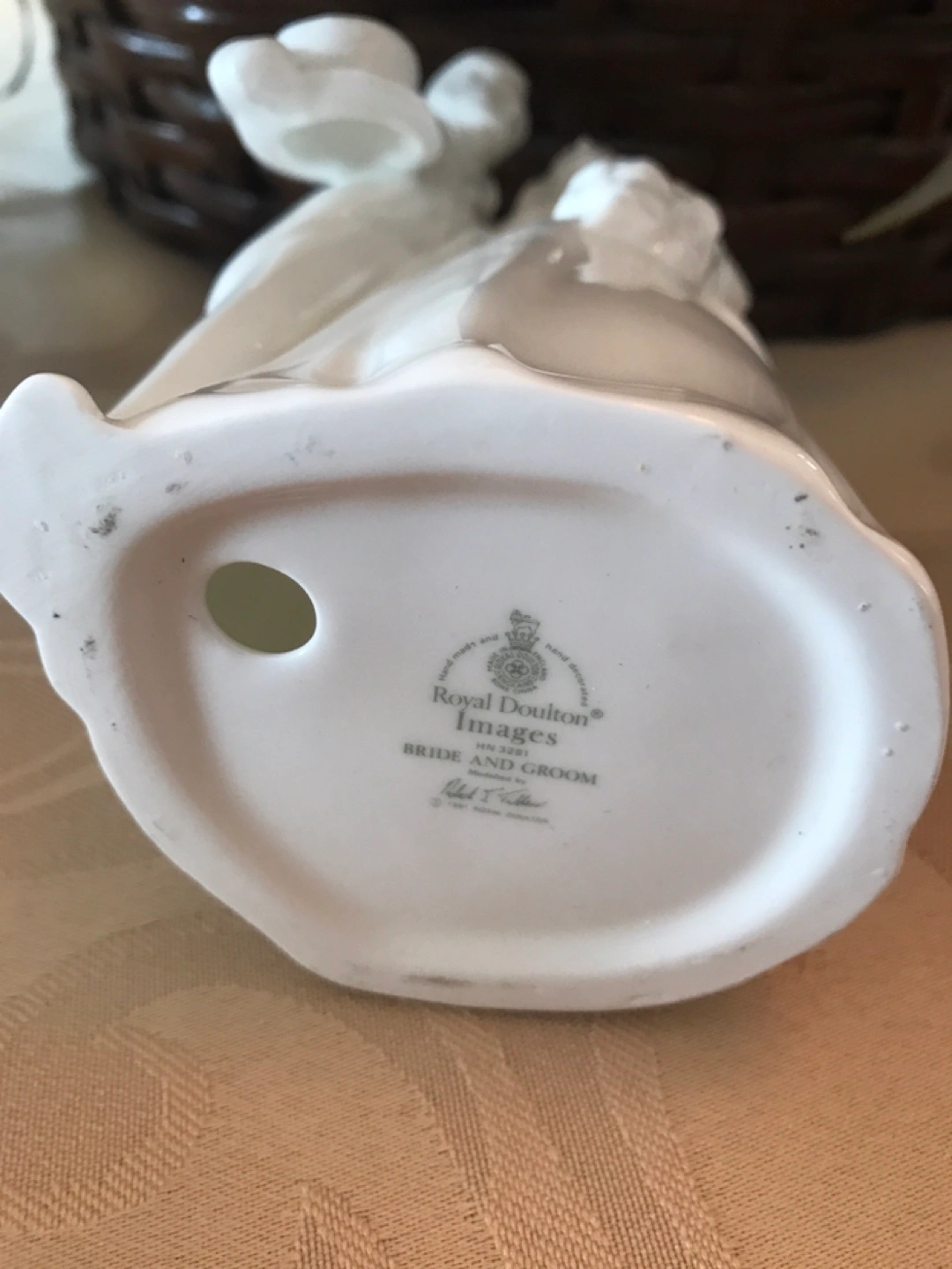 This is a Royal Doulton Images 'Bride and Groom' figurine. It's made of white ceramic. This piece is perfect for a wedding cake topper or anniversary gift!