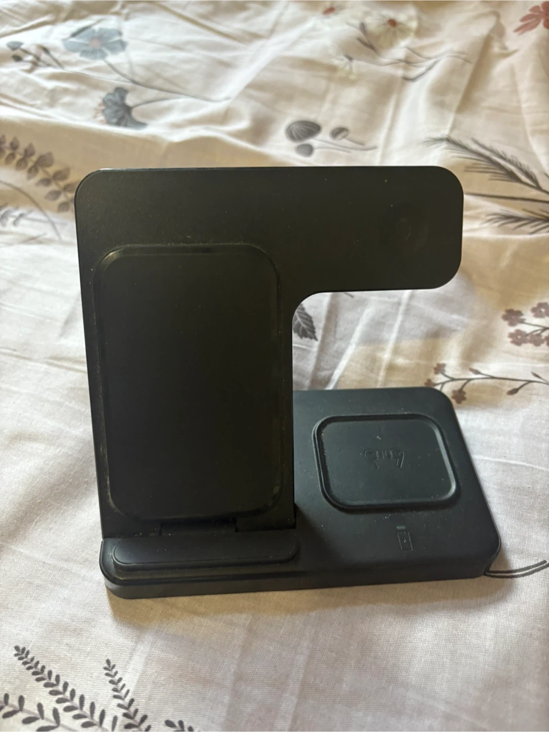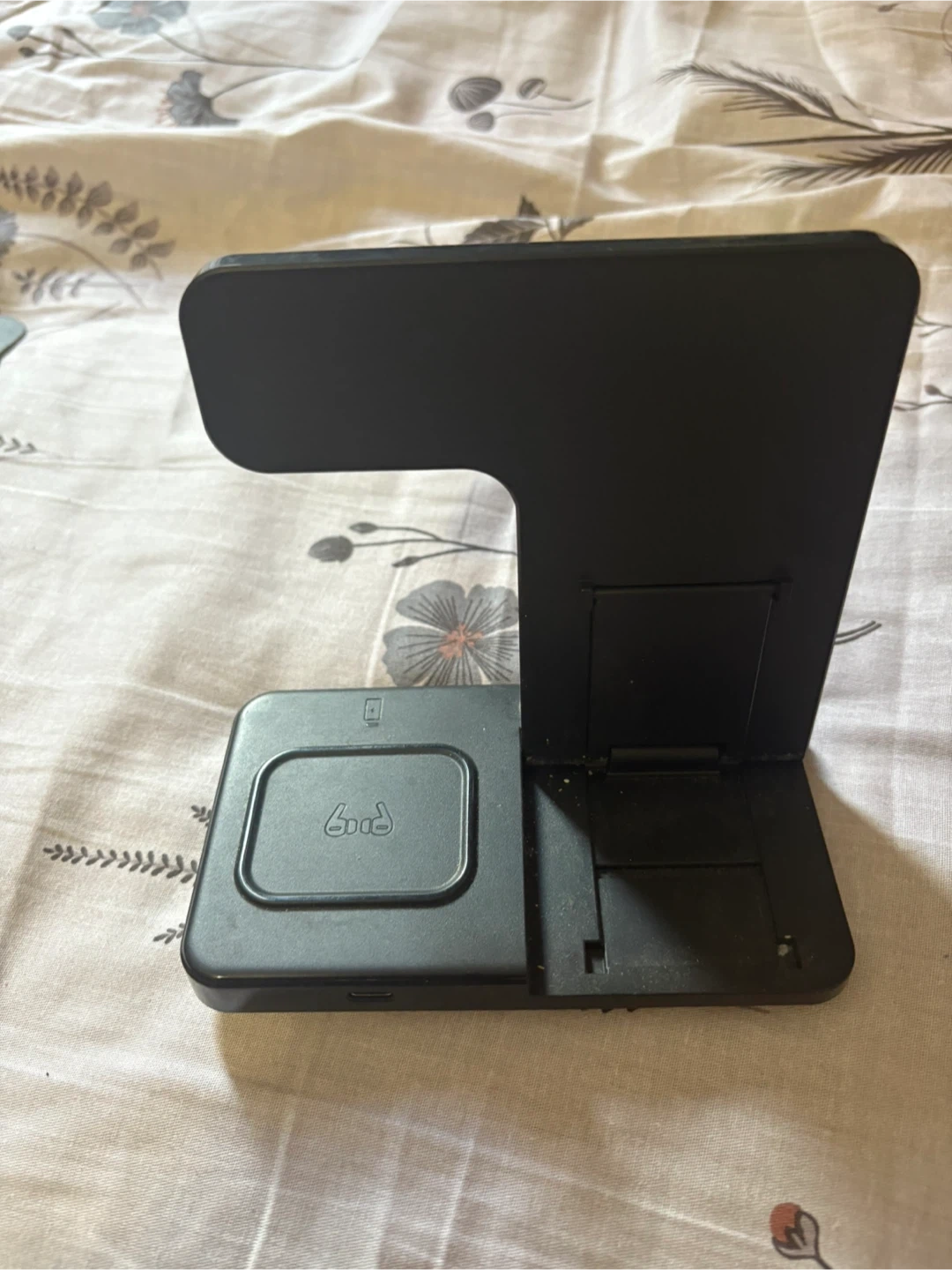 Selling a handy black wireless charging stand! It's in great shape and perfect for keeping your devices charged and organized. It appears to be lightweight and portable, making it ideal for travel or your desk