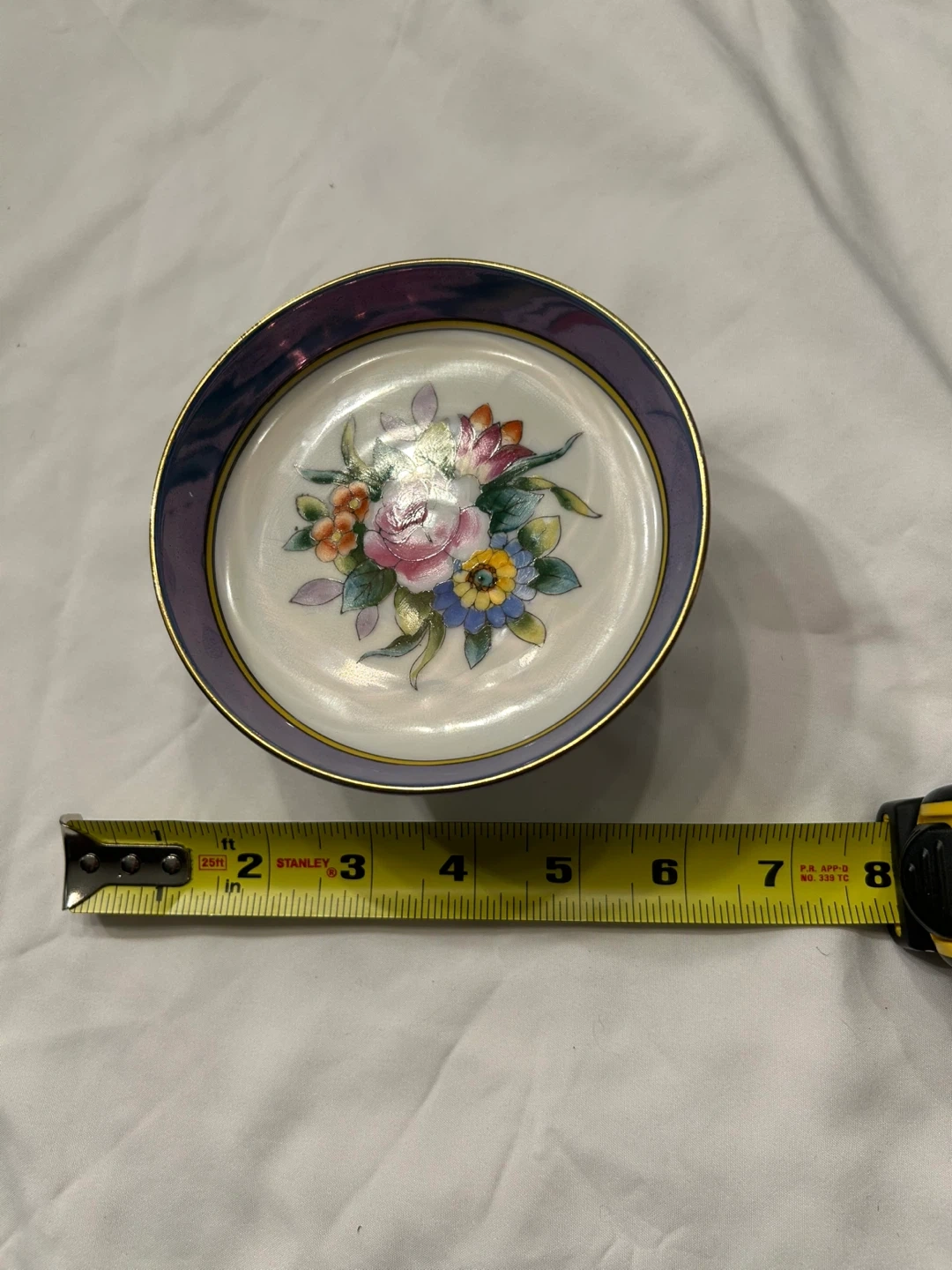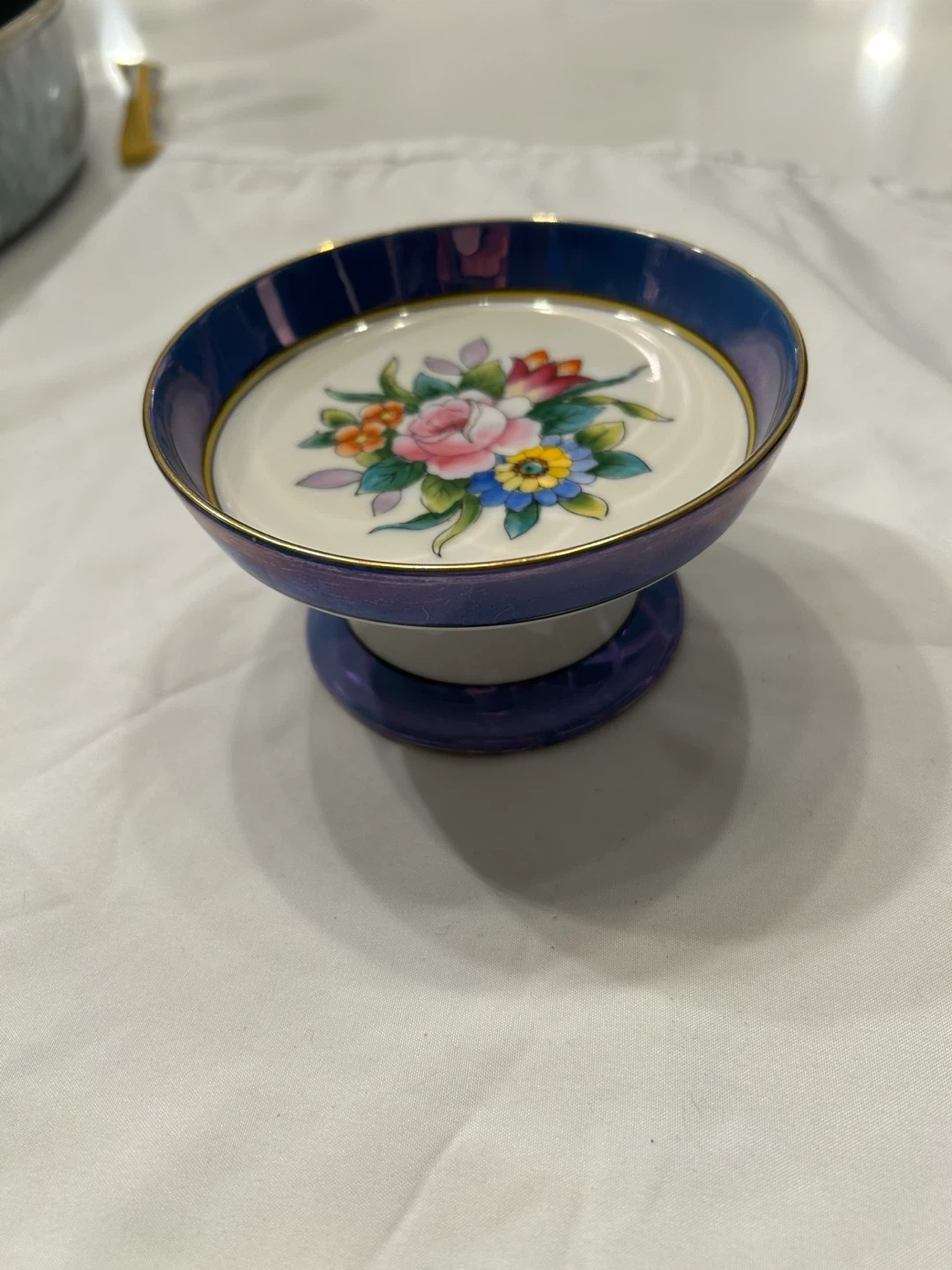 This is a Noritake pedestal dish with a hand-painted floral design.Known for their superior artistry and craftsmanship,the backstamp indicates was made 1912-1940 Japan.