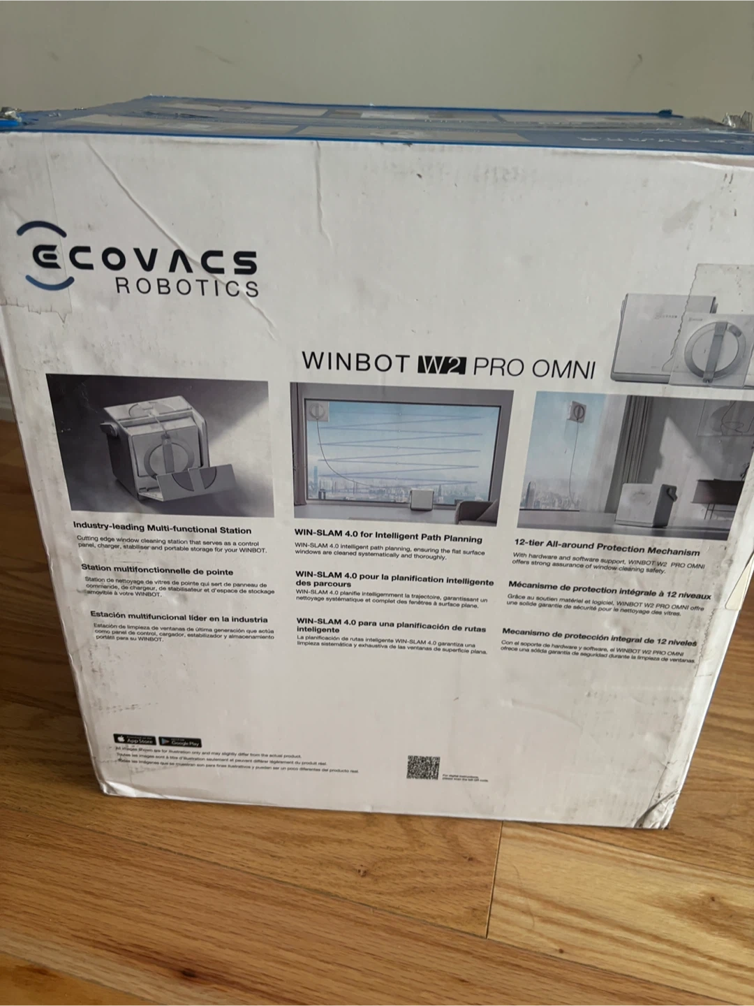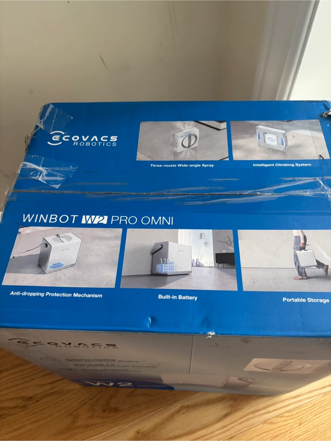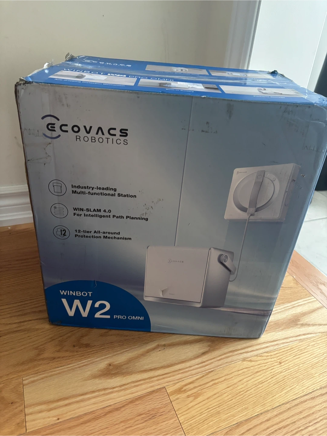This ECOVACS WINBOT W2 PRO OMNI is an automatic window cleaning robot. It features an industry-leading multi-functional station with WIN-SLAM 4.0 for intelligent path planning. It also has a 12-tier all-around protection mechanism and a built-in battery.
