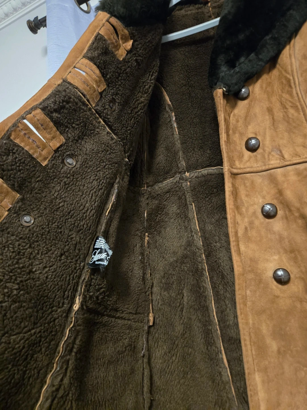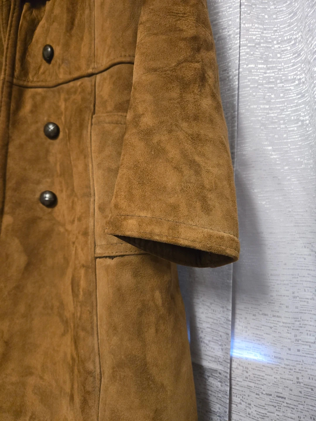 Vintage Brown Suede Double-Breasted Shearling Lined Coat