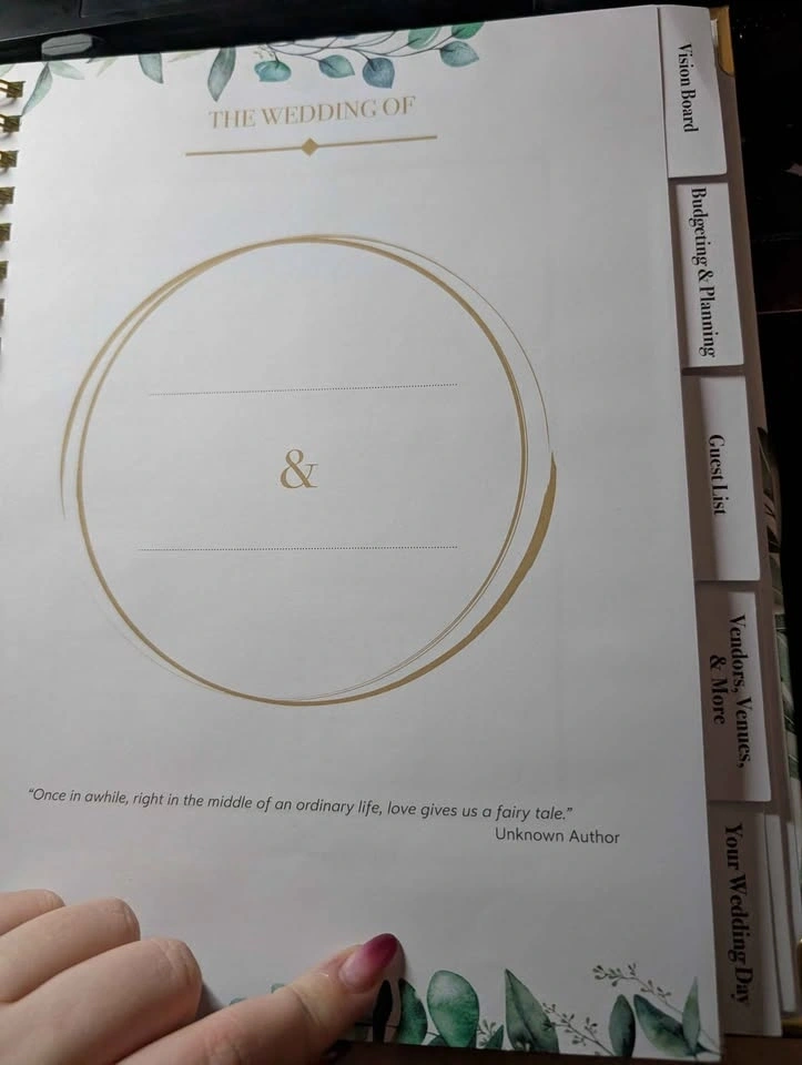 This comprehensive wedding planner has 132 pages organized into thematic tabs for wedding vision, budgeting, guest list, vendors, and the wedding day. It also includes convenient pockets for magazine cut-outs, business cards, and notes. It's designed to cover every aspect of your wedding, helping you plan your dream wedding effortlessly. The portable size is perfect for vendor appointments. It makes a thoughtful and practical engagement gift for any bride-to-be, helping them stay organized and stress-free. Pick up only.