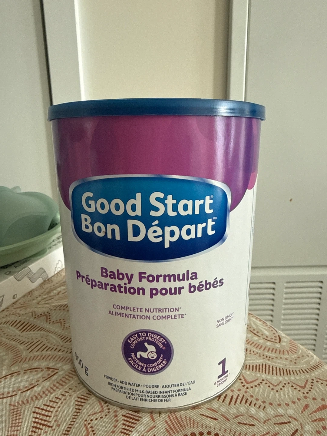 This is Good Start Bon Départ baby formula, Stage 1. It's designed for easy digestion for infants 0-6 months. The powder is iron-fortified. Expiry date is 2027 August 20.