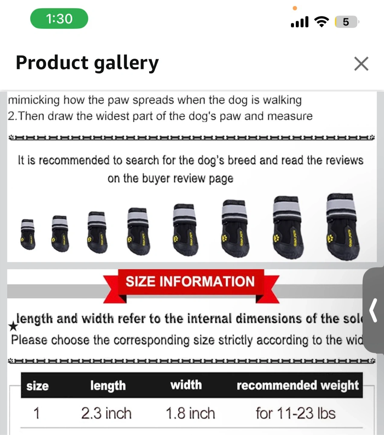 Qunyi Pets Dog Boots Size 1
