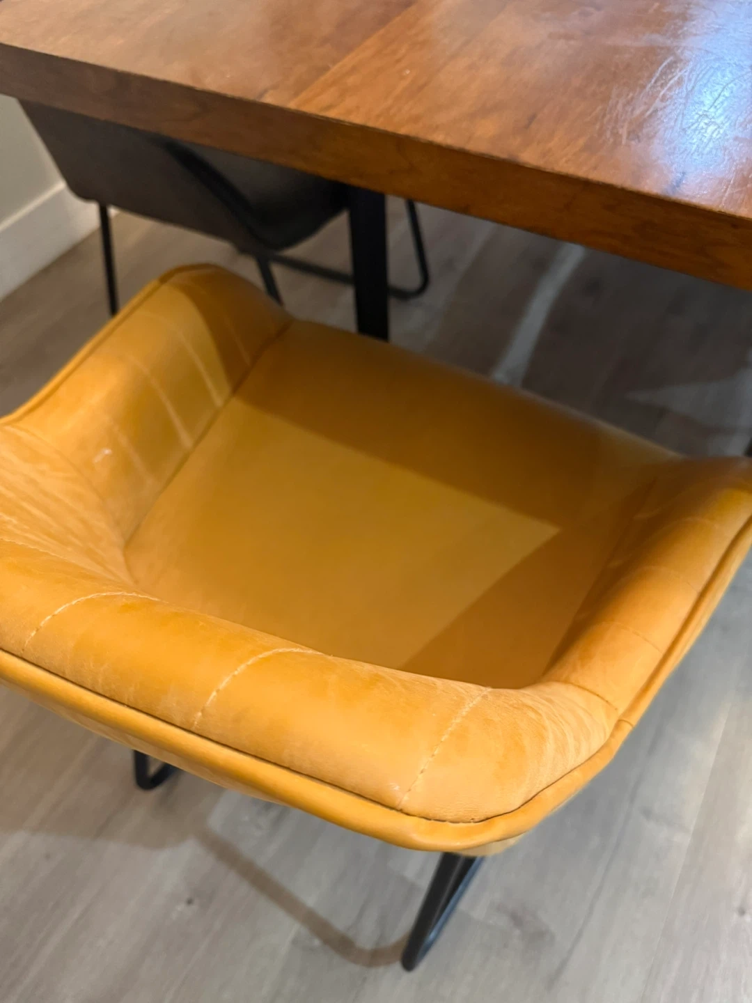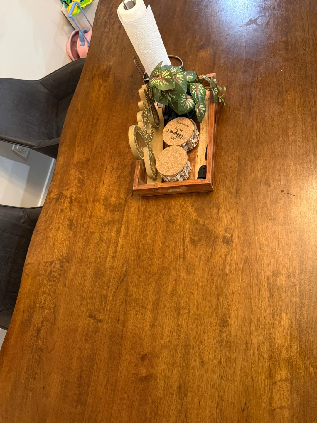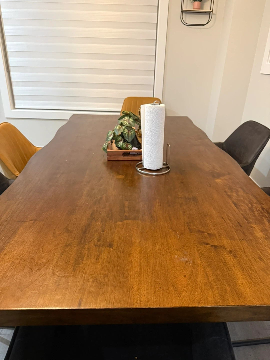 Beautiful solid wood dining table with a live edge finish. Seats six comfortably. Perfect for family dinners or hosting friends!