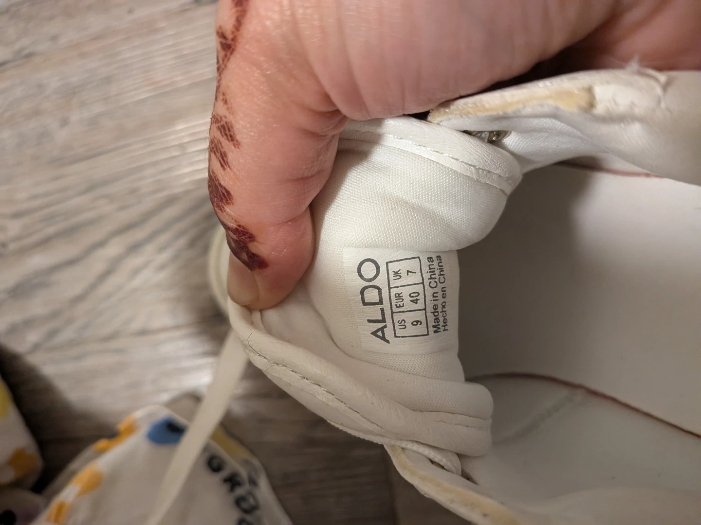 These are Aldo white sneakers with gold touch. Never wore them. Selling these because making up space as we are moving.