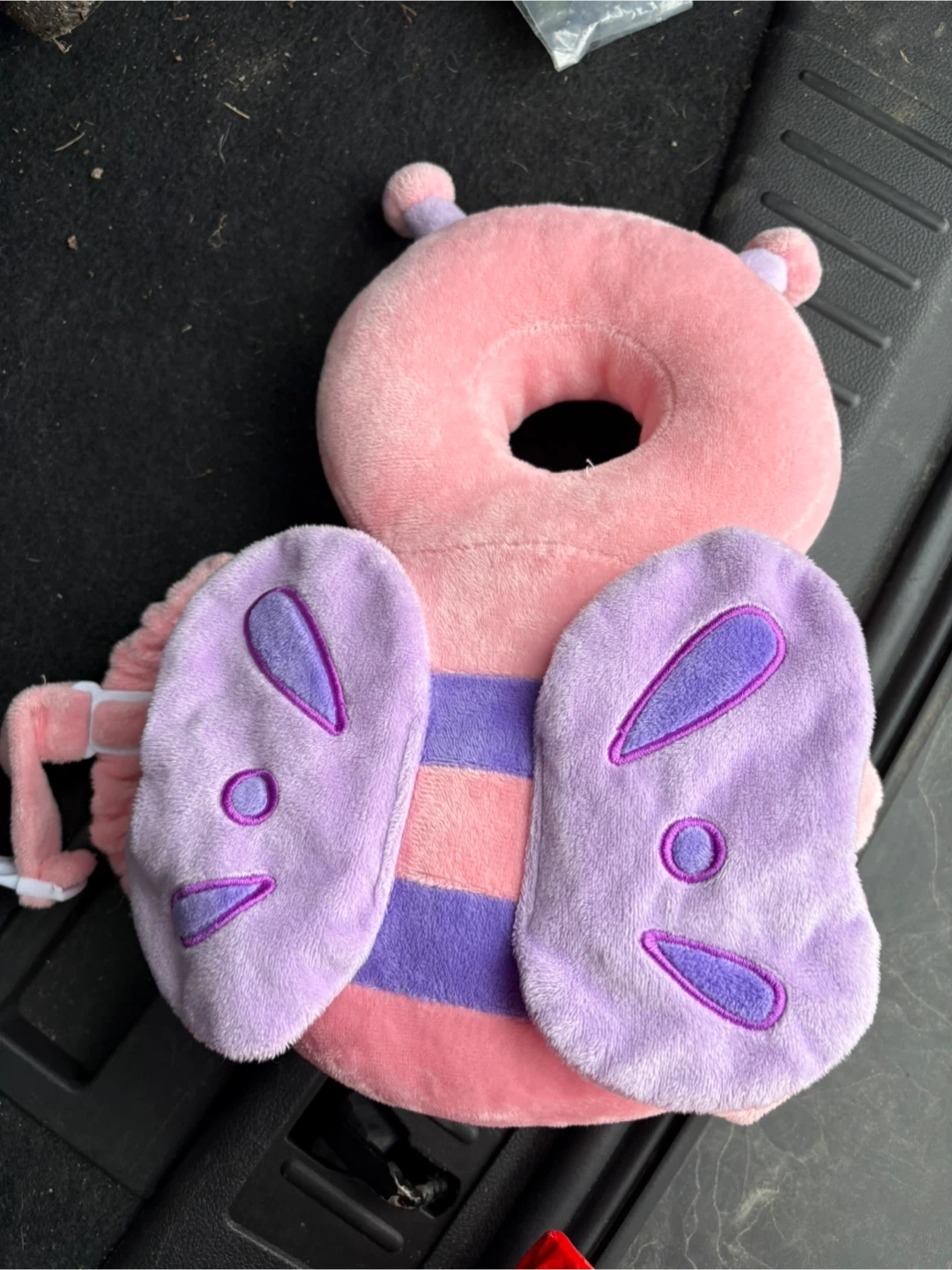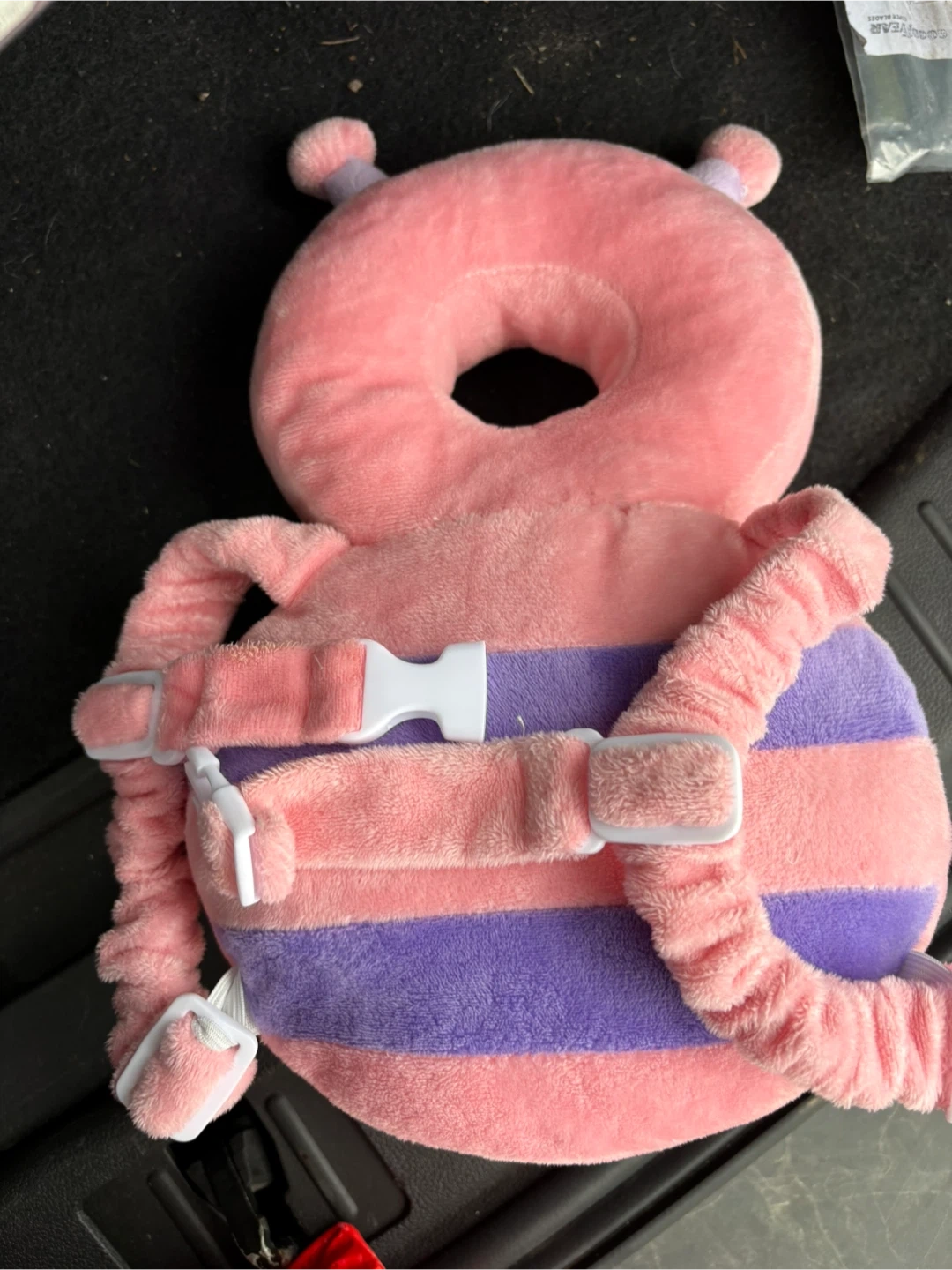This cute bee-shaped pillow helps protect your baby's head. It's made from soft plush material and has adjustable straps for a snug fit. Perfect for little ones learning to walk or sit up!