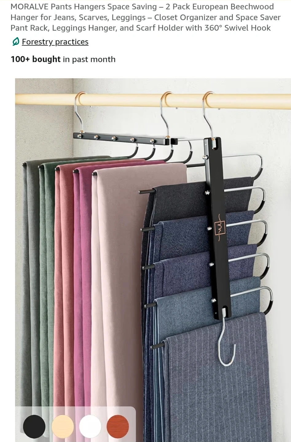 4 MORALVE Beechwood Pants Hangers Space Saving Closet Organizer