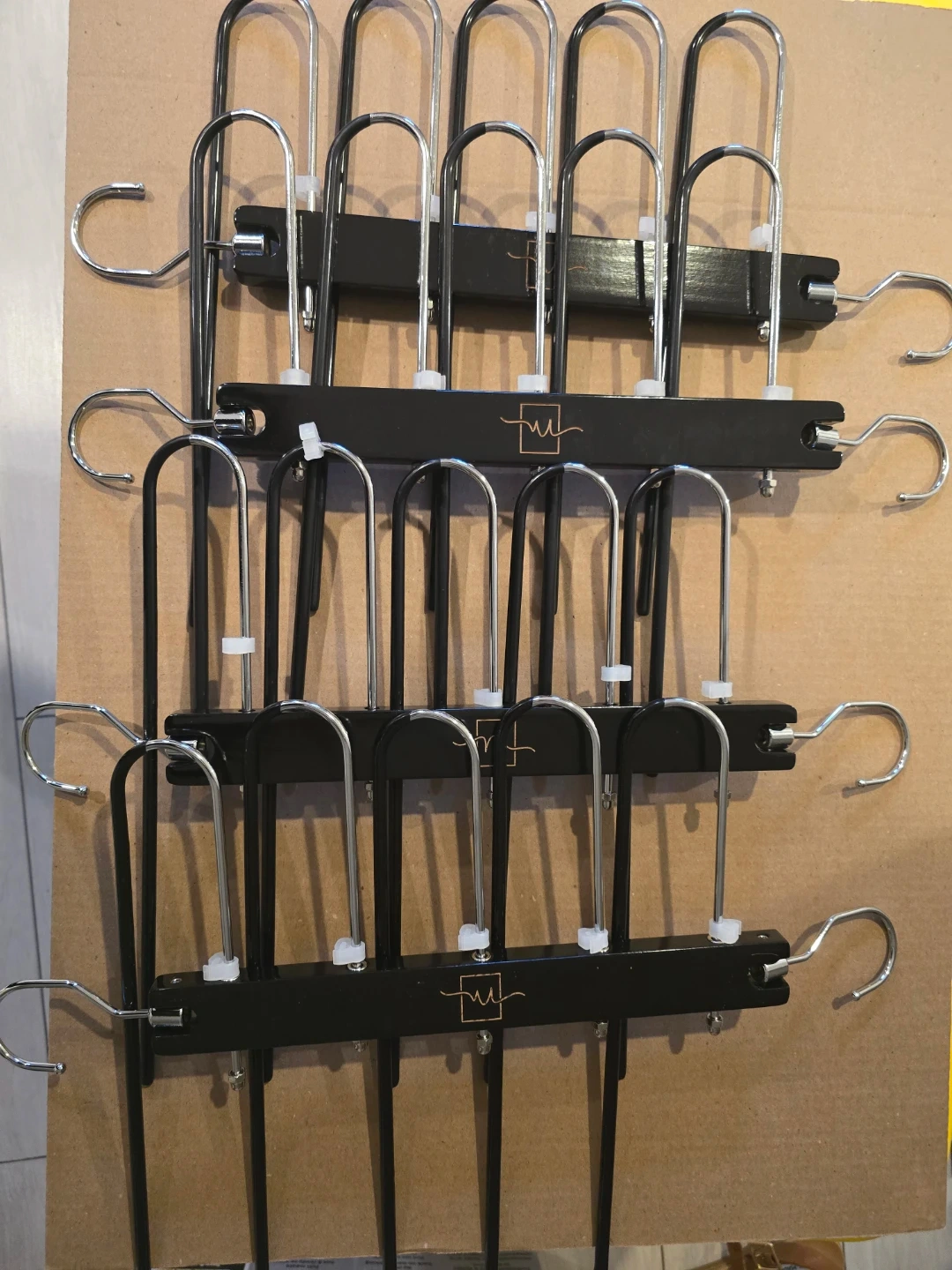 Get organized with these space-saving hangers for your pants, scarves, and leggings. Each hanger features multiple slots to maximize closet space. Constructed from durable beechwood and metal, they offer a sturdy solution for your wardrobe needs.