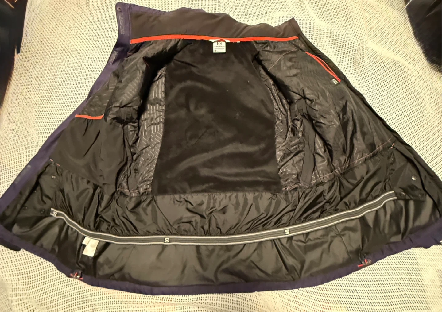 Selling a Salomon women's ski jacket in size XL! Purple colour with fuchsia accents and in great condition. Perfect for hitting the slopes this winter season. Worn only for one season. Has snow cuff on bottom and in sleeves.