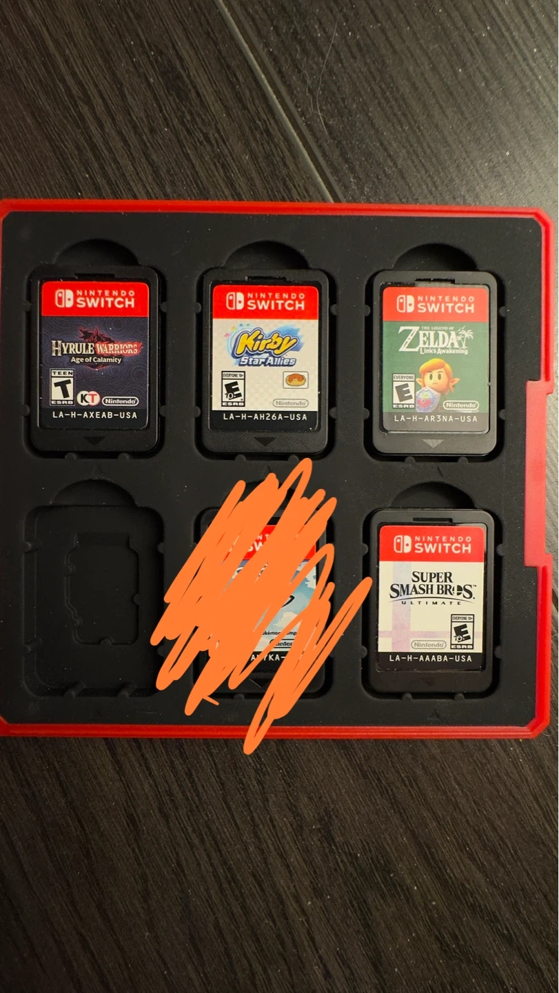 Selling a collection of 4 Nintendo Switch game cartridges.