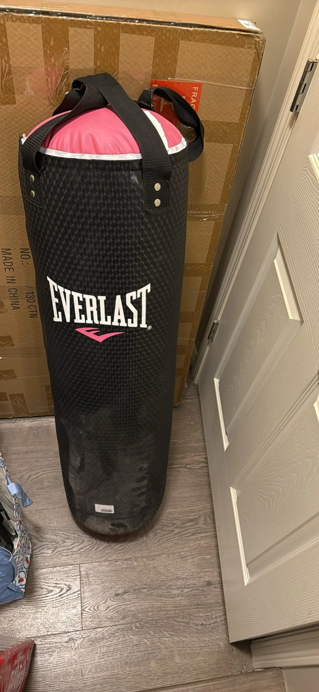 Get ready to rumble with this Everlast punching bag! Though it's seen a few rounds, it's still in good condition and ready for more action. Perfect for anyone looking to blow off some steam or train like a pro. Additional specs: Durable construction, Ideal for boxing and MMA training. This punching bag is looking for a new home where it can help someone achieve their fitness goals. Don't miss out on the opportunity to add some punch to your workout routine! Priced at $125, this punching bag offers great value for anyone looking to level up their training. If this ad is still up, the punching bag is still available! So go ahead and send me a message and prepare to unleash your inner fighter. Cash accepted.
