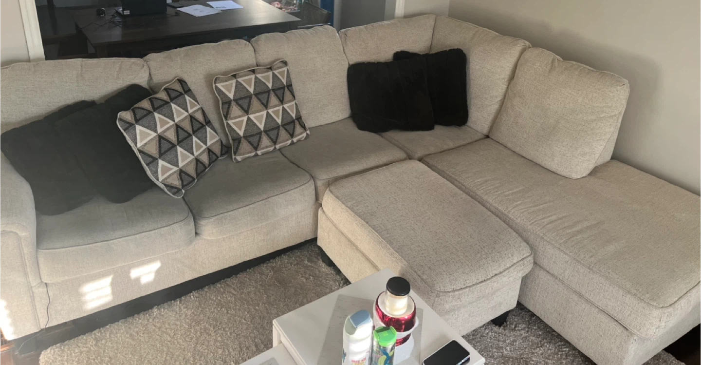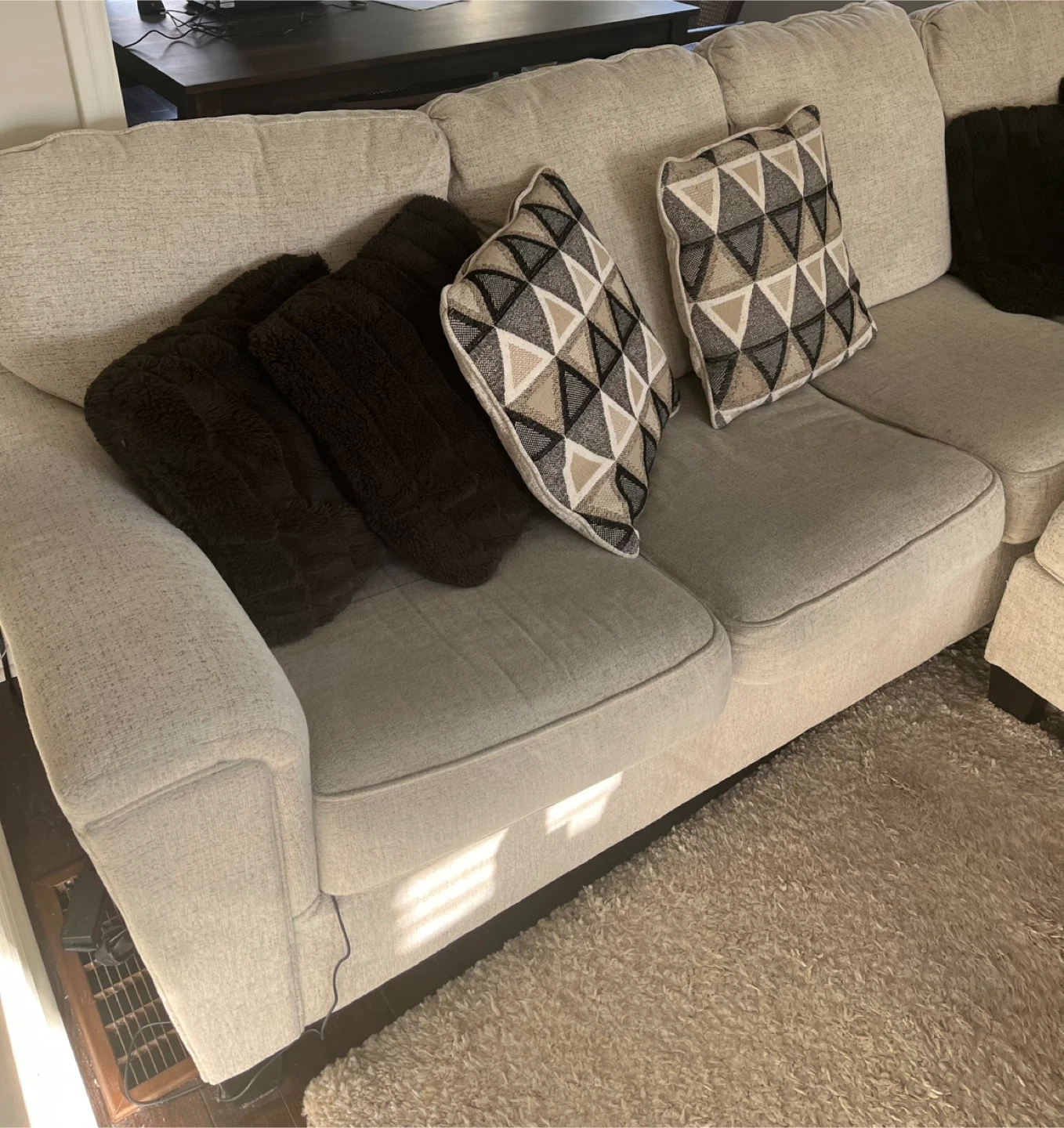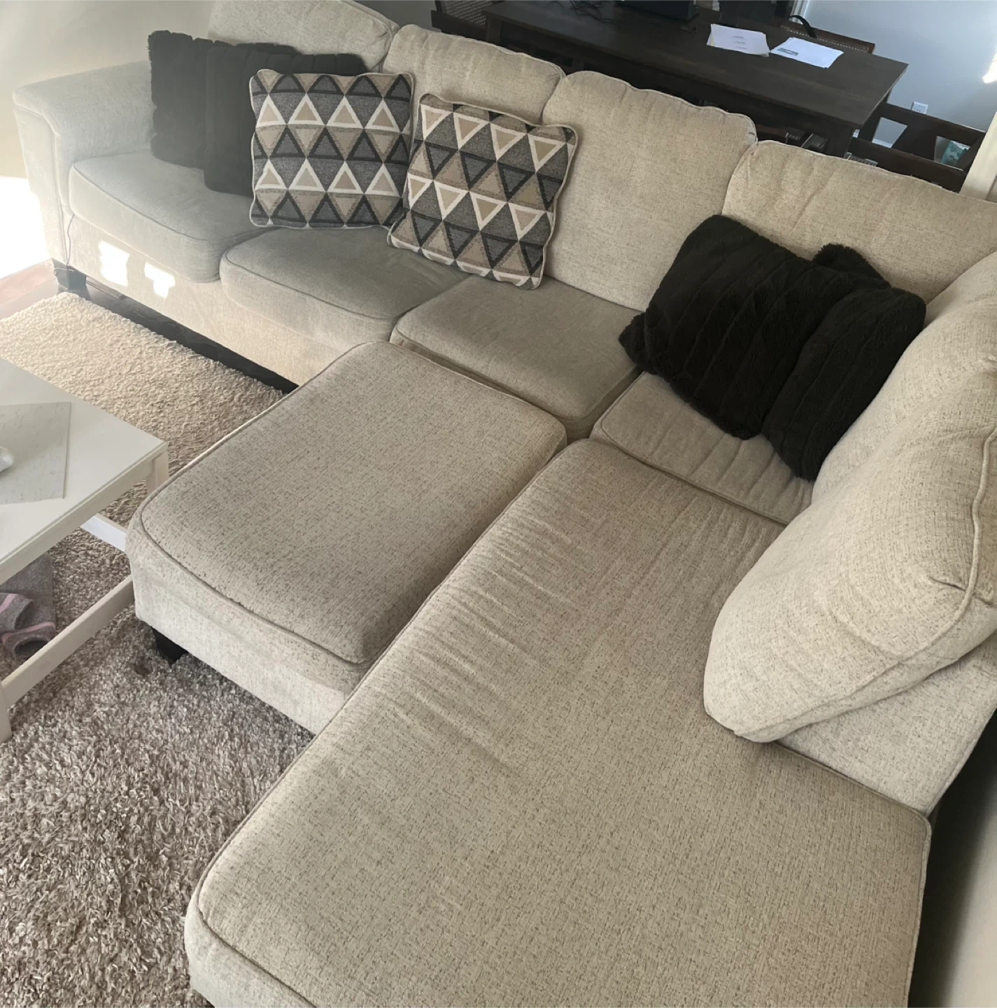 Selling our spacious sectional couch, perfect for relaxing, entertaining, or cozy movie nights. The couch is in great condition with no tears or damages.
