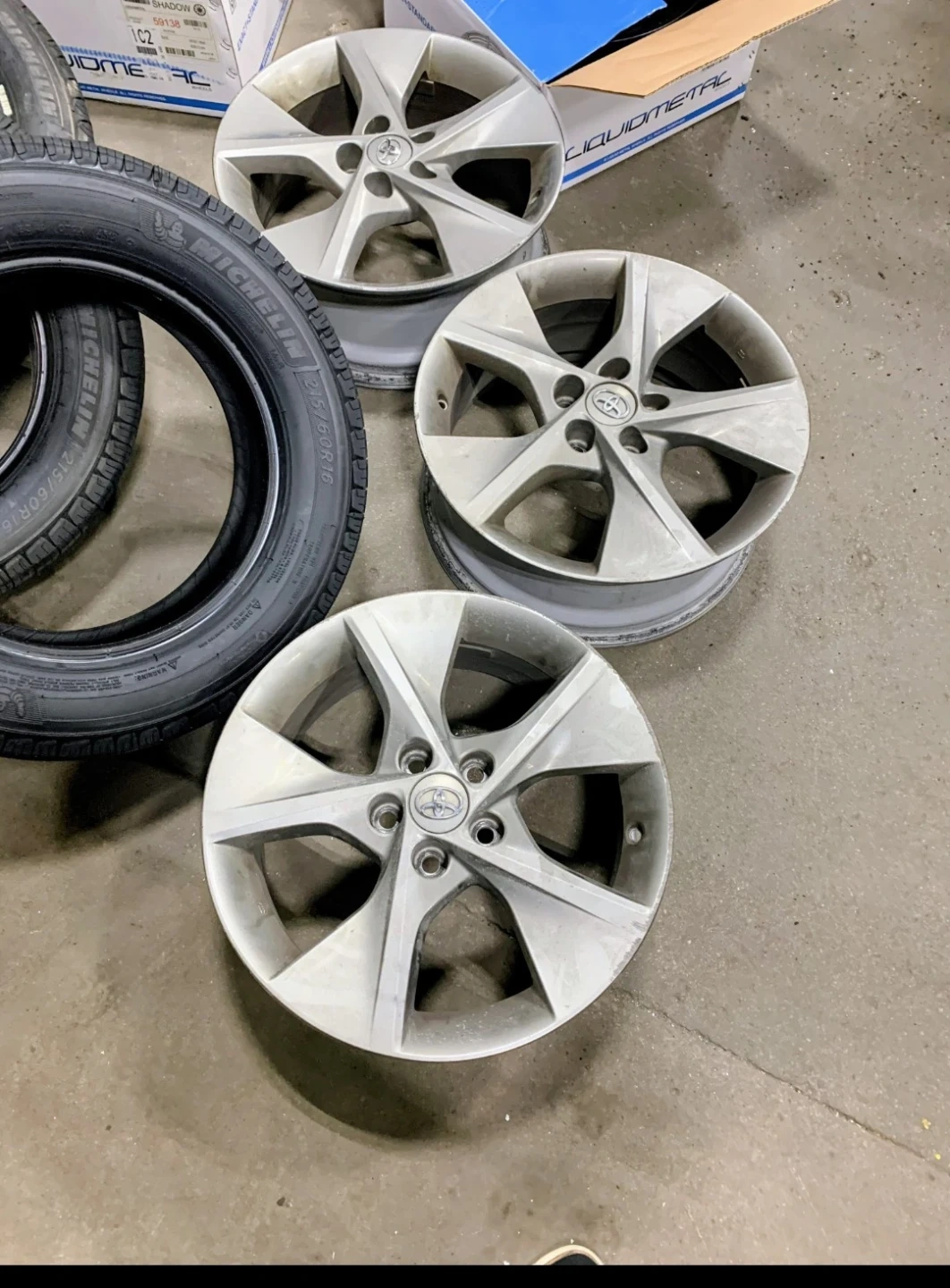 Set of four alloy wheels for a Toyota vehicle. These are 18-inch wheels. Good condition.