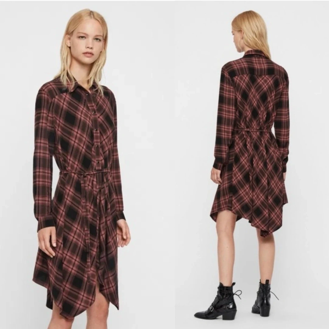 All Saints Tala Check Midi Dress