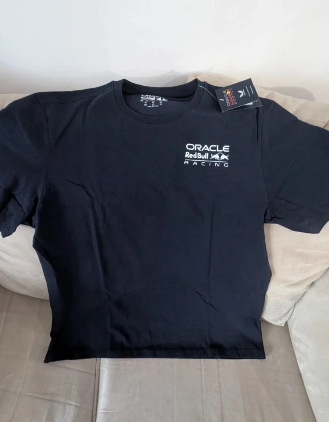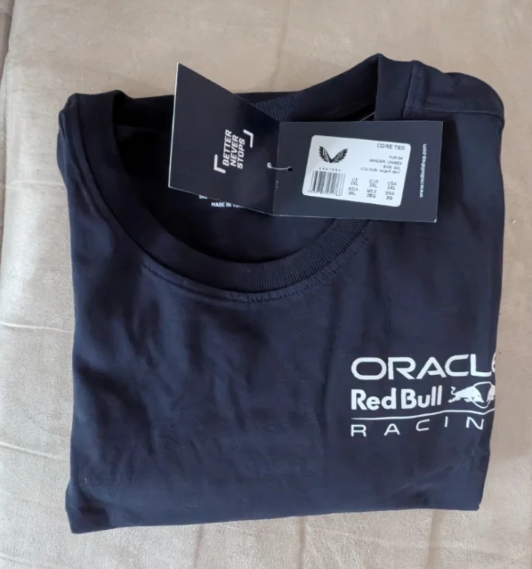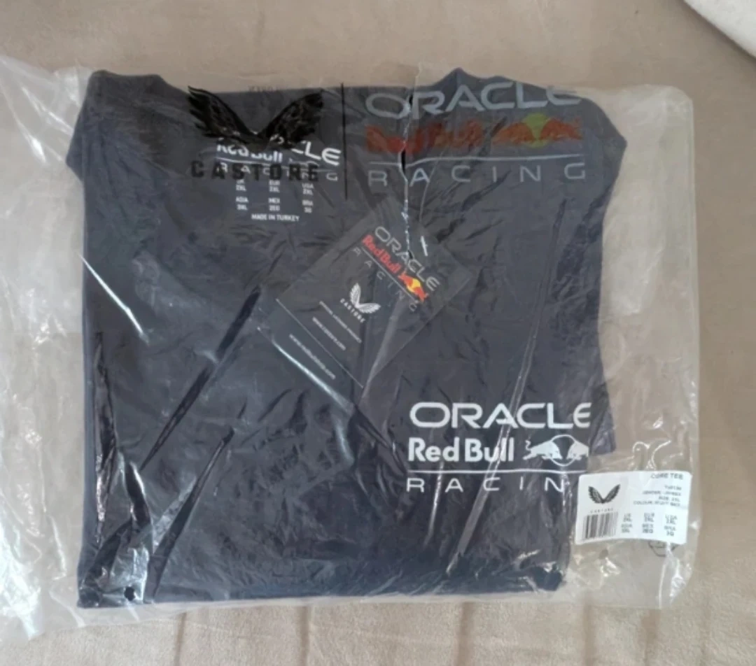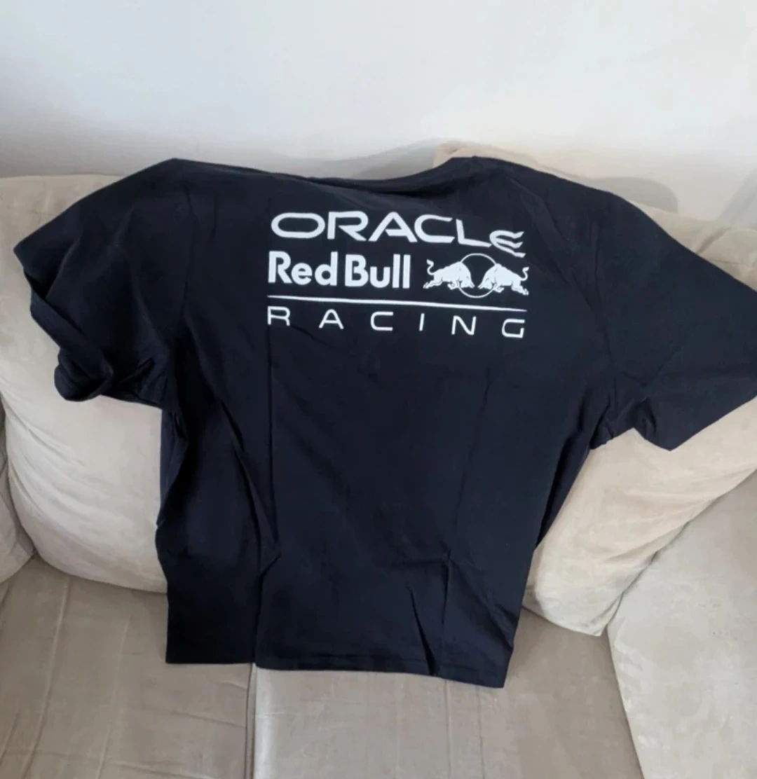 This is an official Oracle Red Bull Racing t-shirt with the team's logo printed on the front and back.