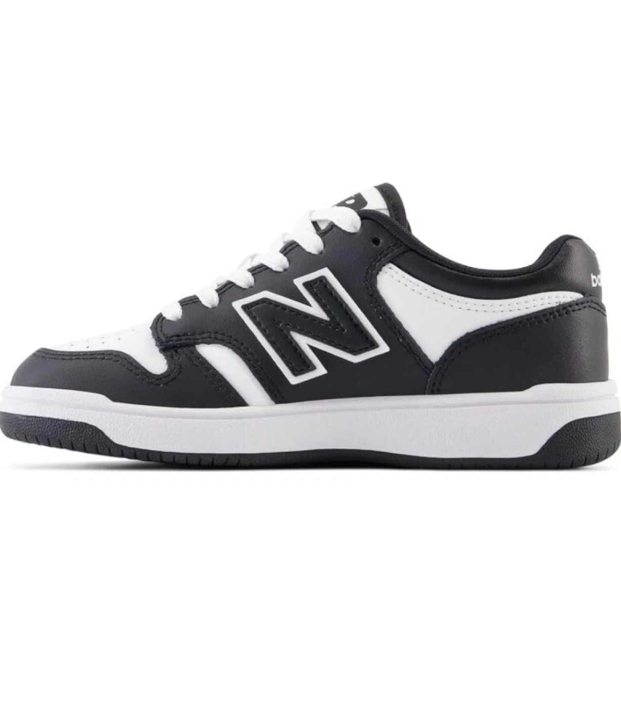 Classic black and white New Balance sneakers. Features a durable leather and synthetic upper with a rubber sole. Lace-up closure for a secure fit. These low-top shoes are great for everyday wear.