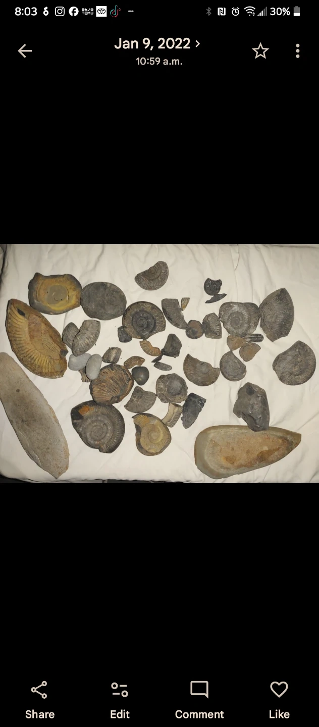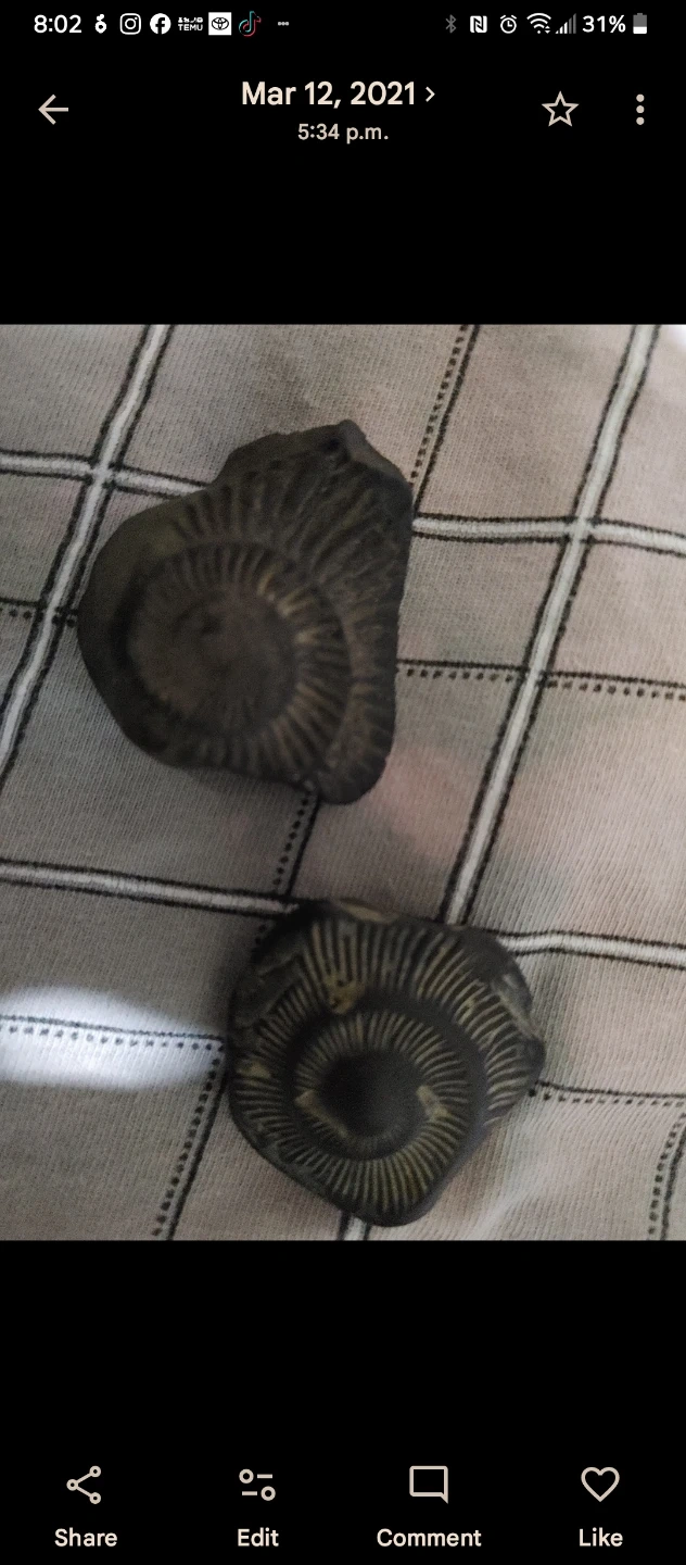 Several ammonite fossils. These are ancient marine invertebrate fossils. They're spiral-shaped and showcase detailed natural patterns. Great for collectors or educational displays! Let me know I have small, medium and large.