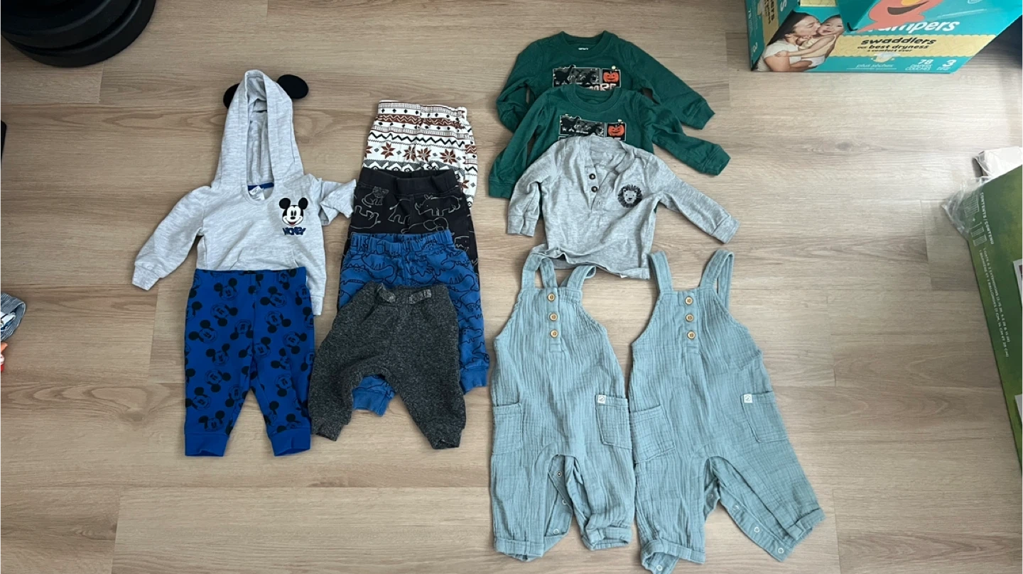 Baby Clothes Bundle - Mickey Mouse, Overalls & Pants