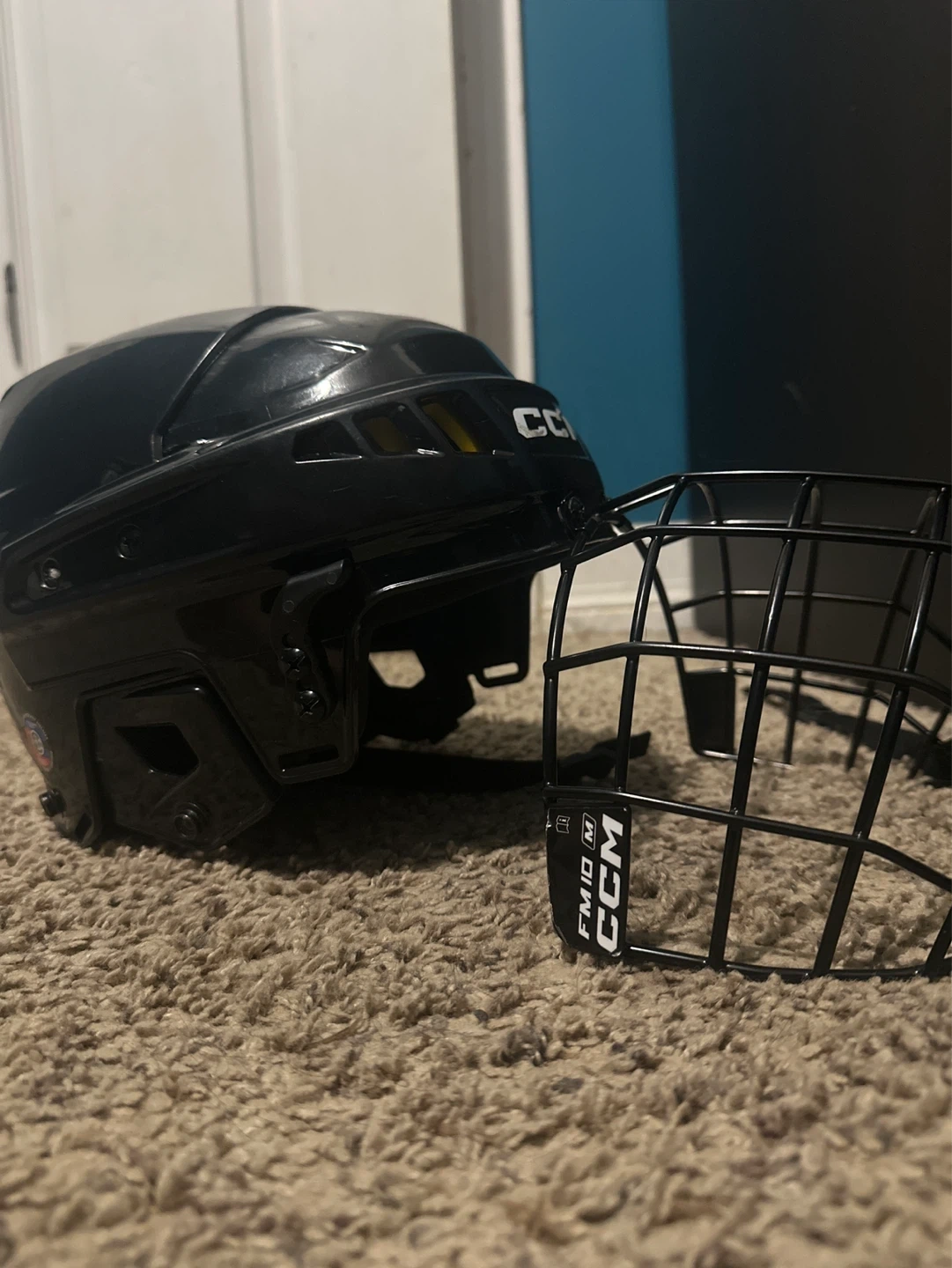 CCM XTID hockey helmet and cage combo. Comes in black, size junior medium. This helmet offers protection for playing hockey. CSA certified.