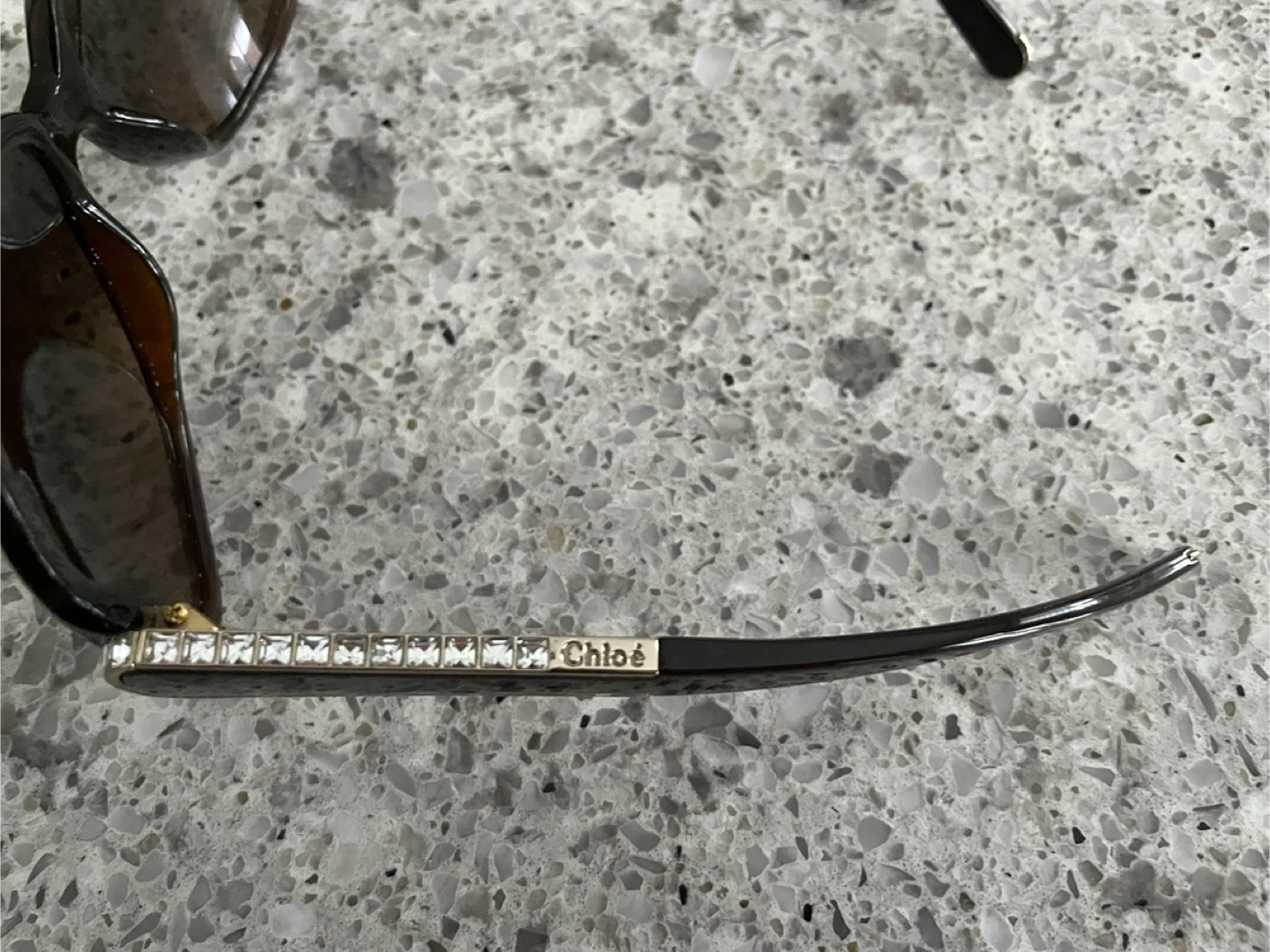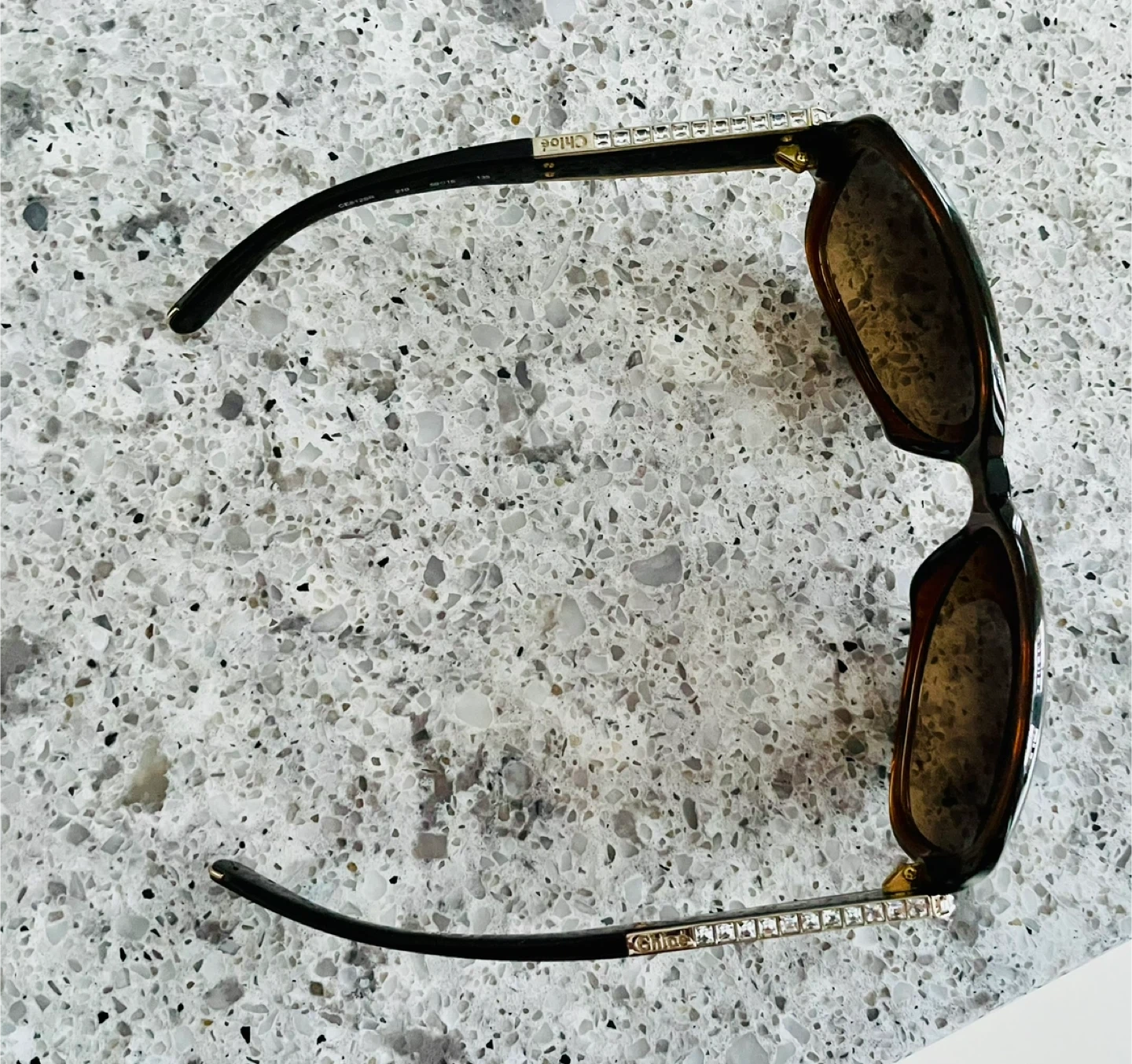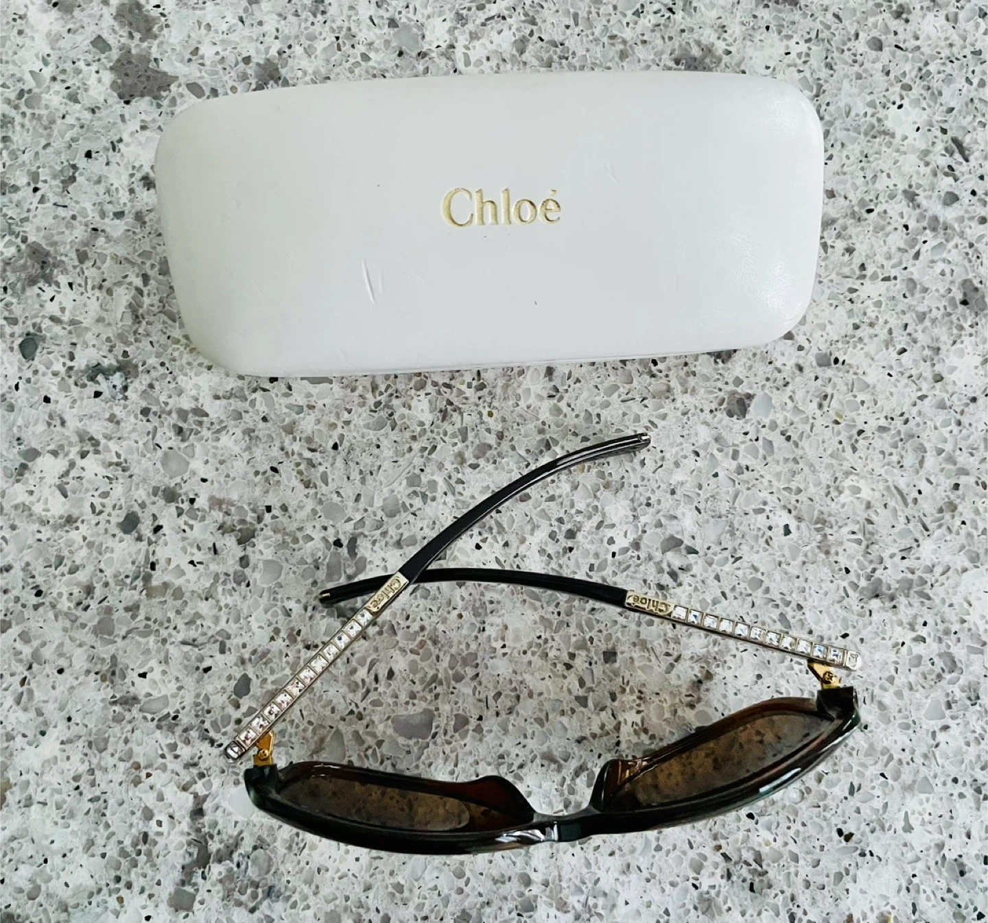 Brown Chloé women sunglasses. Crystal embellishments on the arms. Includes original case.