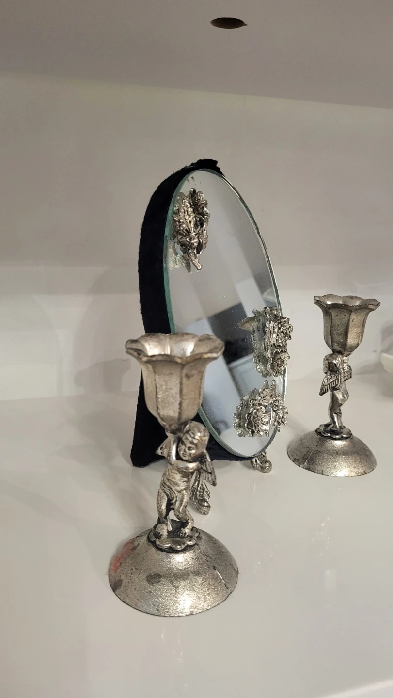 Vintage Cherub Candlestick Holder with a beautiful mirror
