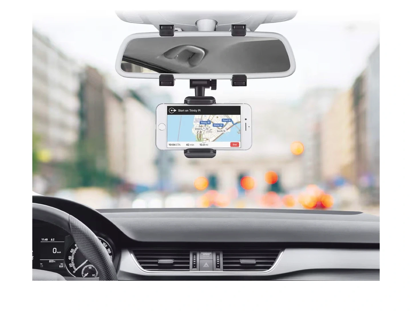 Firmly clamps over the car's rear-view mirror without the need for tools.