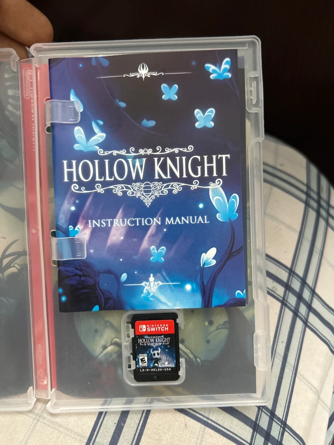 Nintendo Switch game Hollow Knight. Includes instruction manual. ESRB rating is E10+ for Everyone 10 and up. Comes with an instruction manual