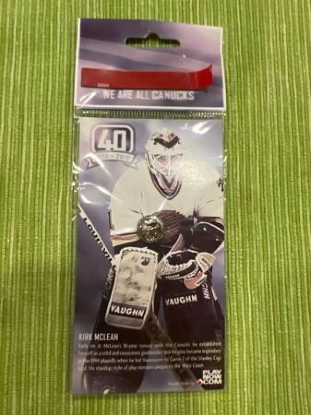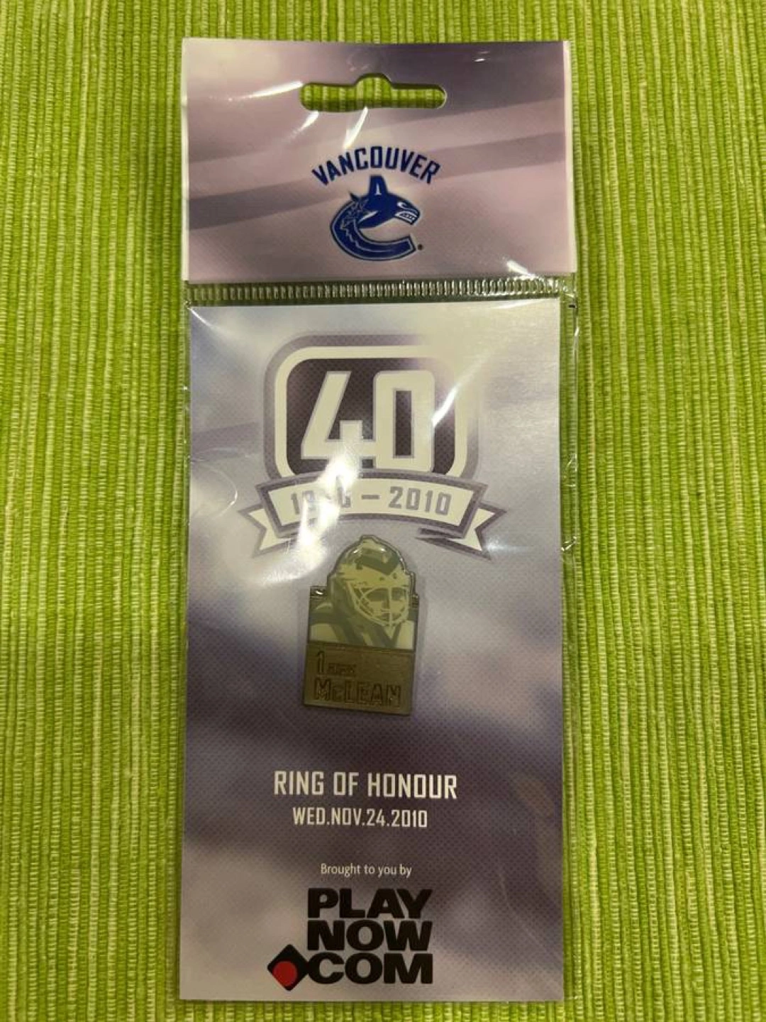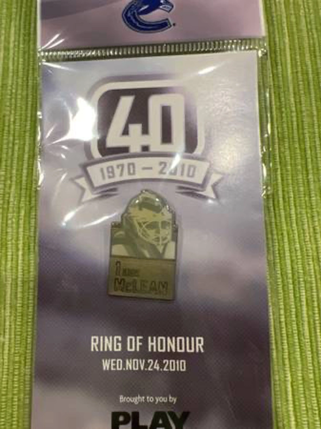 Kirk McLean Vancouver Canucks 40th Anniversary Ring of Honour pin. Part of a series of pins given out at the ceremony. Original packaging included.