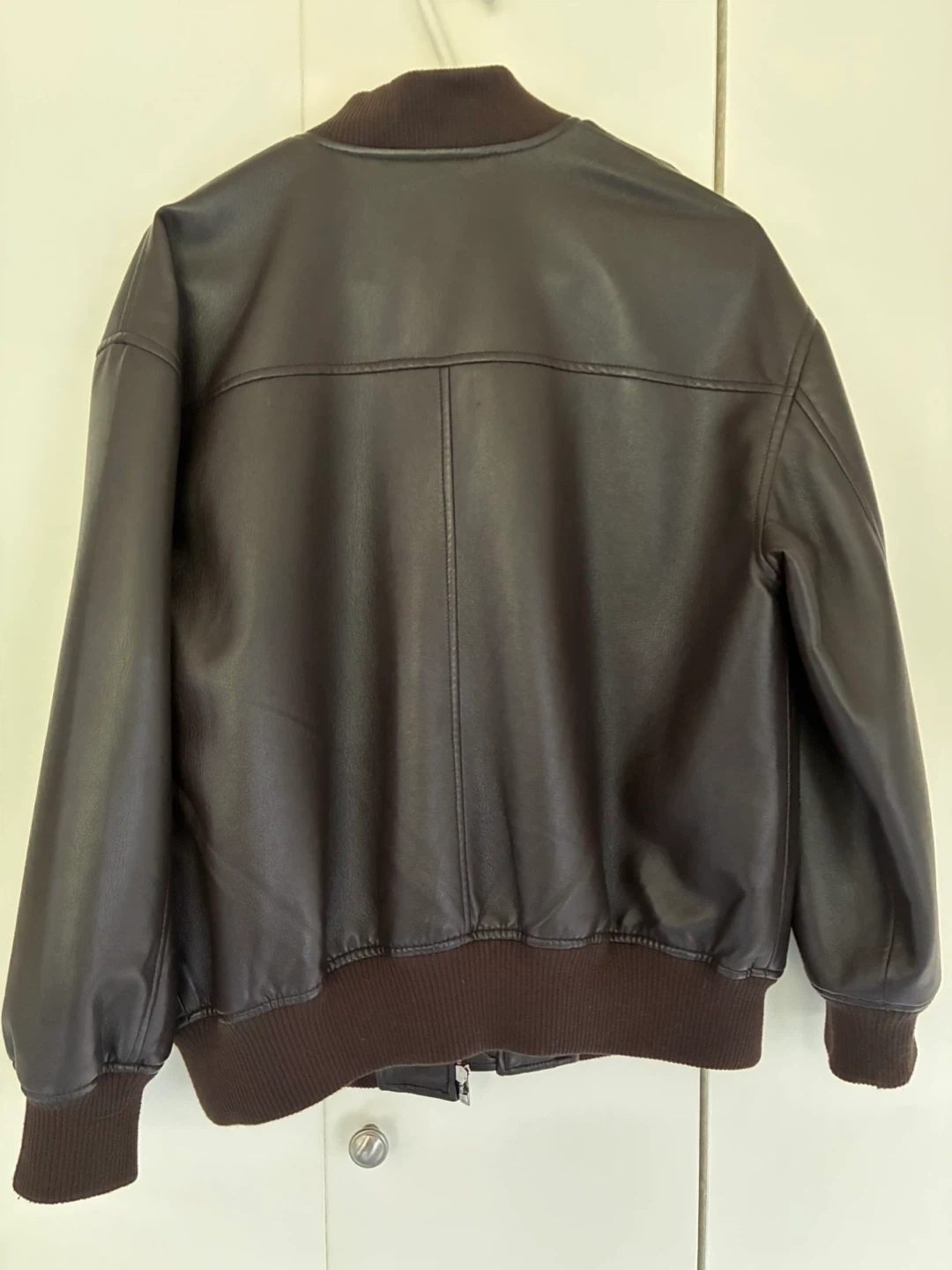 Babaton Brown Faux Leather Bomber Jacket- medium