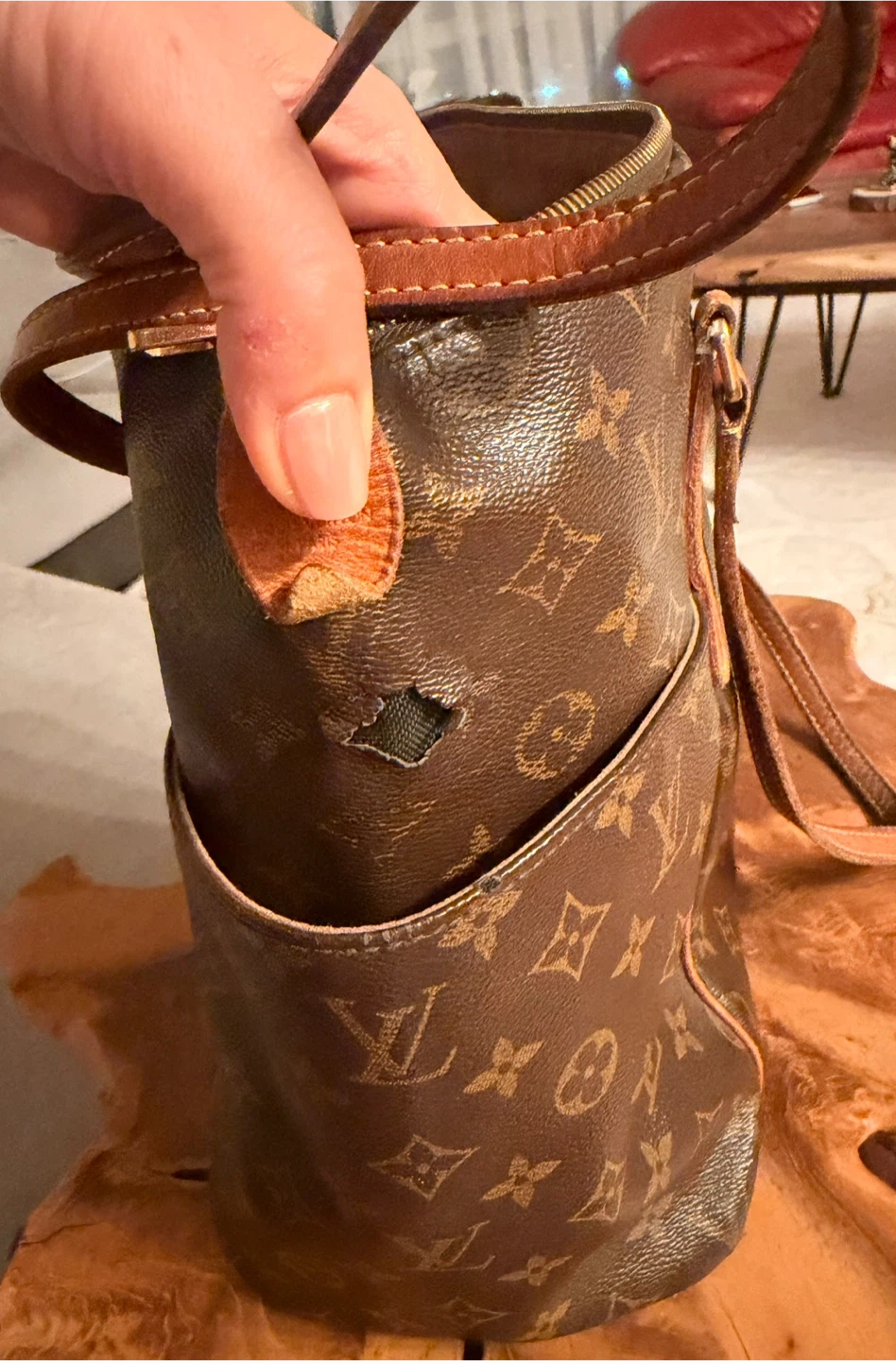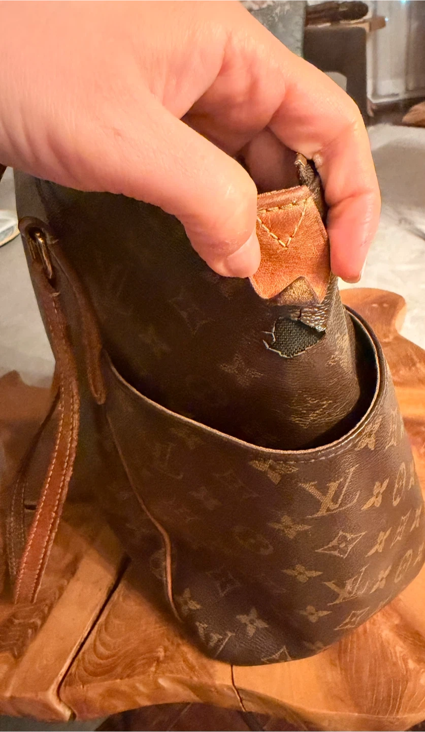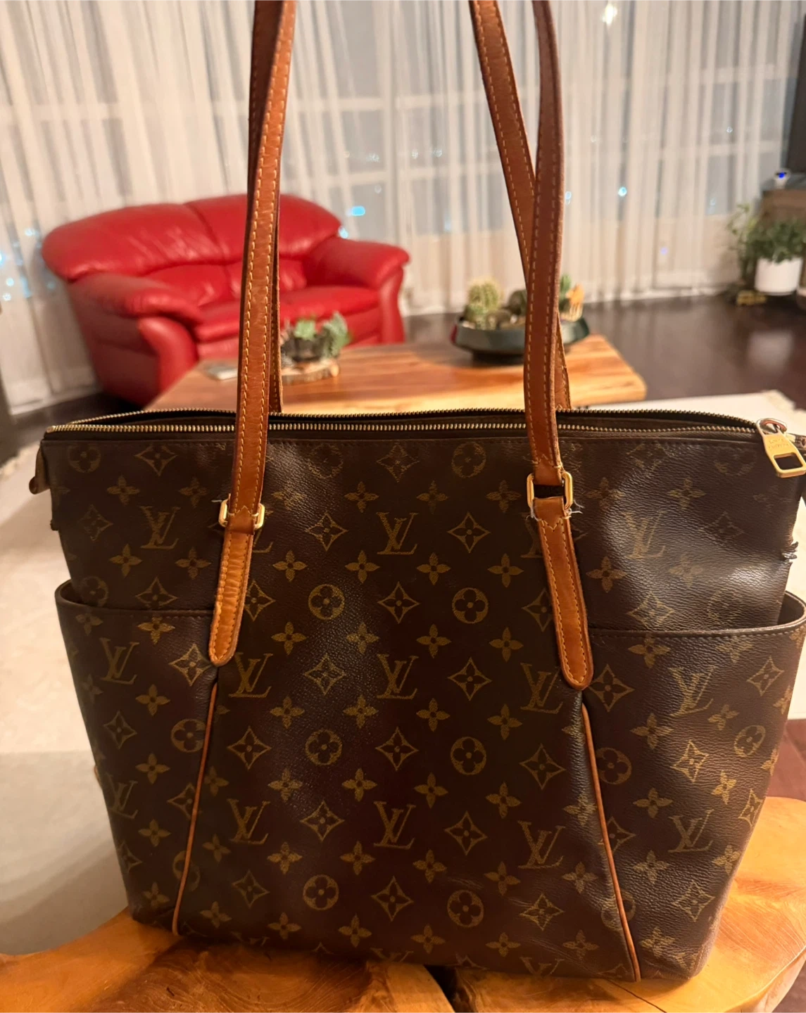 Classic Louis Vuitton tote bag in the signature monogram canvas. It's a stylish and functional everyday bag. This bag has some wear, including a tear on the side as shown in photos.