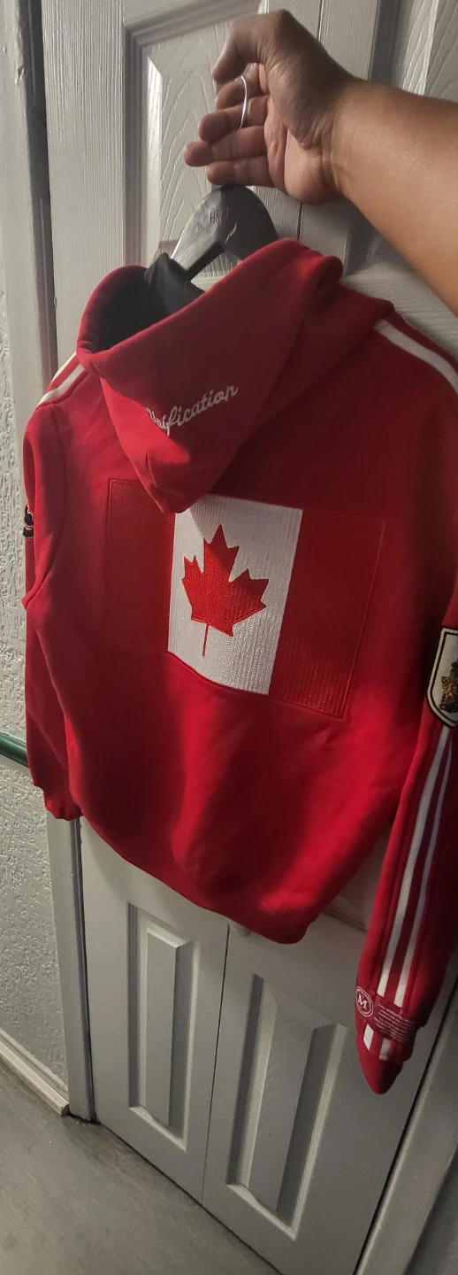 This red Mondetta hoodie proudly displays "CAN" on the front and a Canadian flag on the back. It's made with a comfortable fabric blend. This hoodie's perfect for showing Canadian pride! Medium
