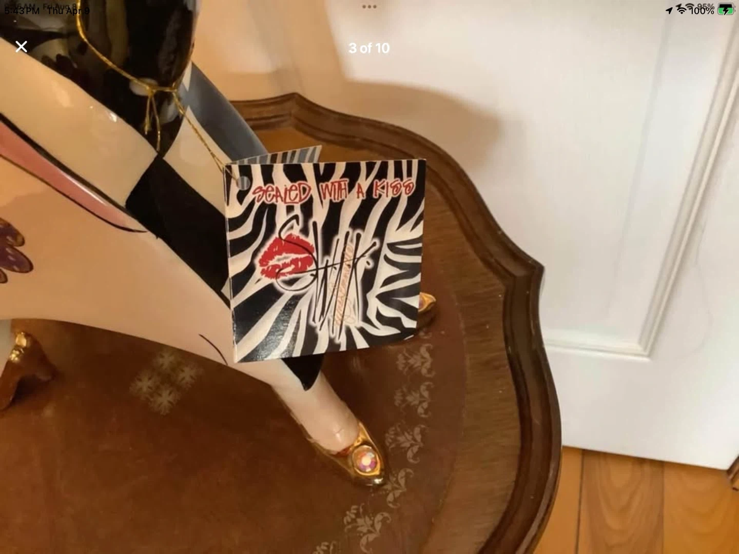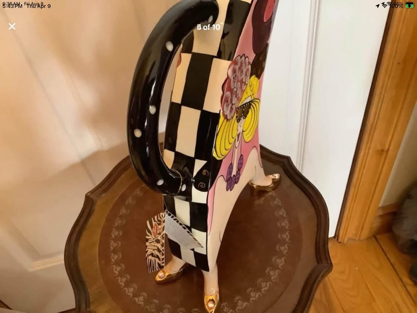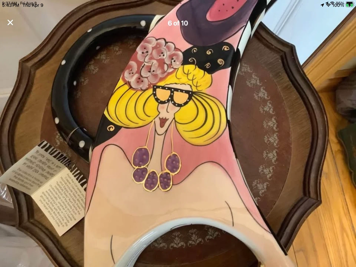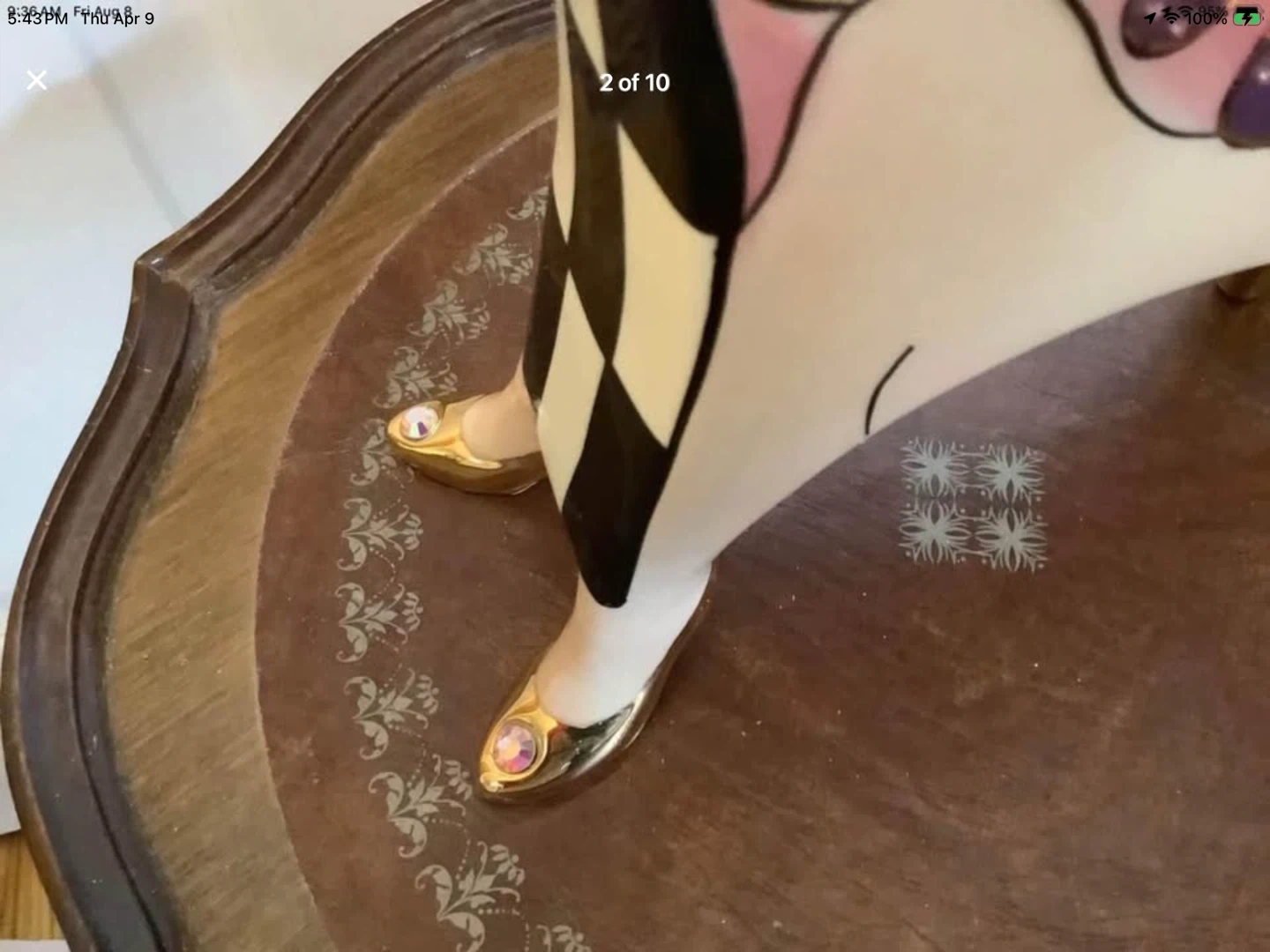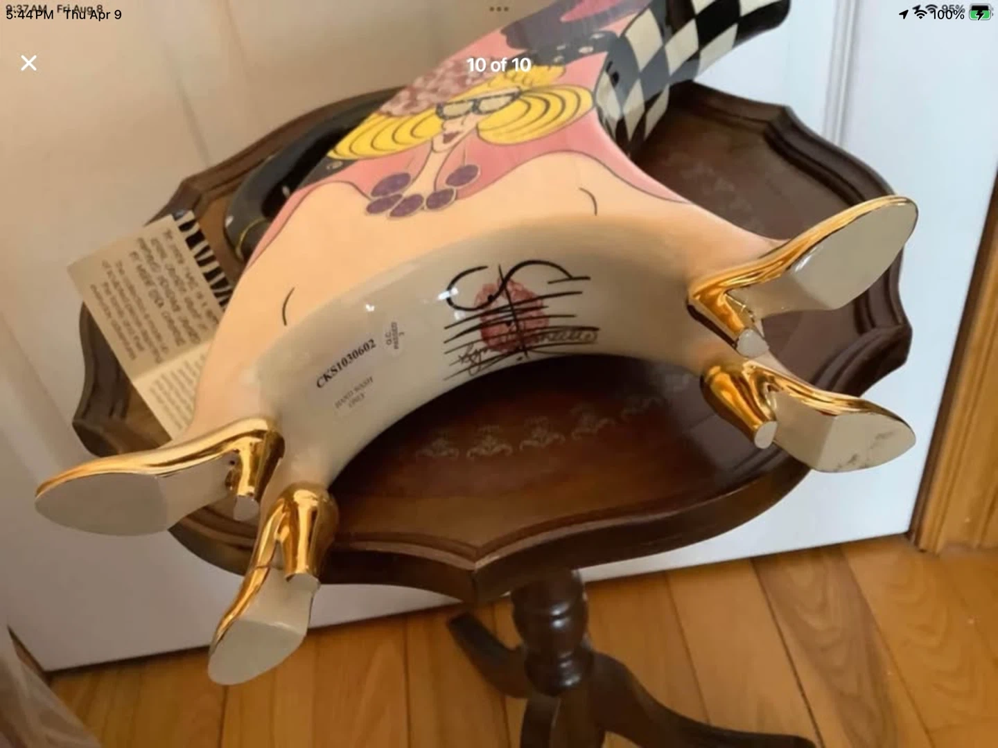 This colourful funky piece would be the centre of attention and inspire conversation in any setting. Check out the shoes and the faux diamonds.