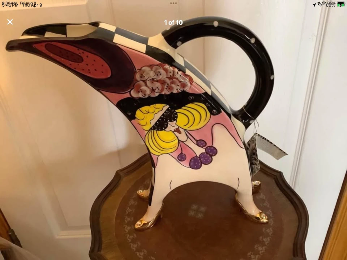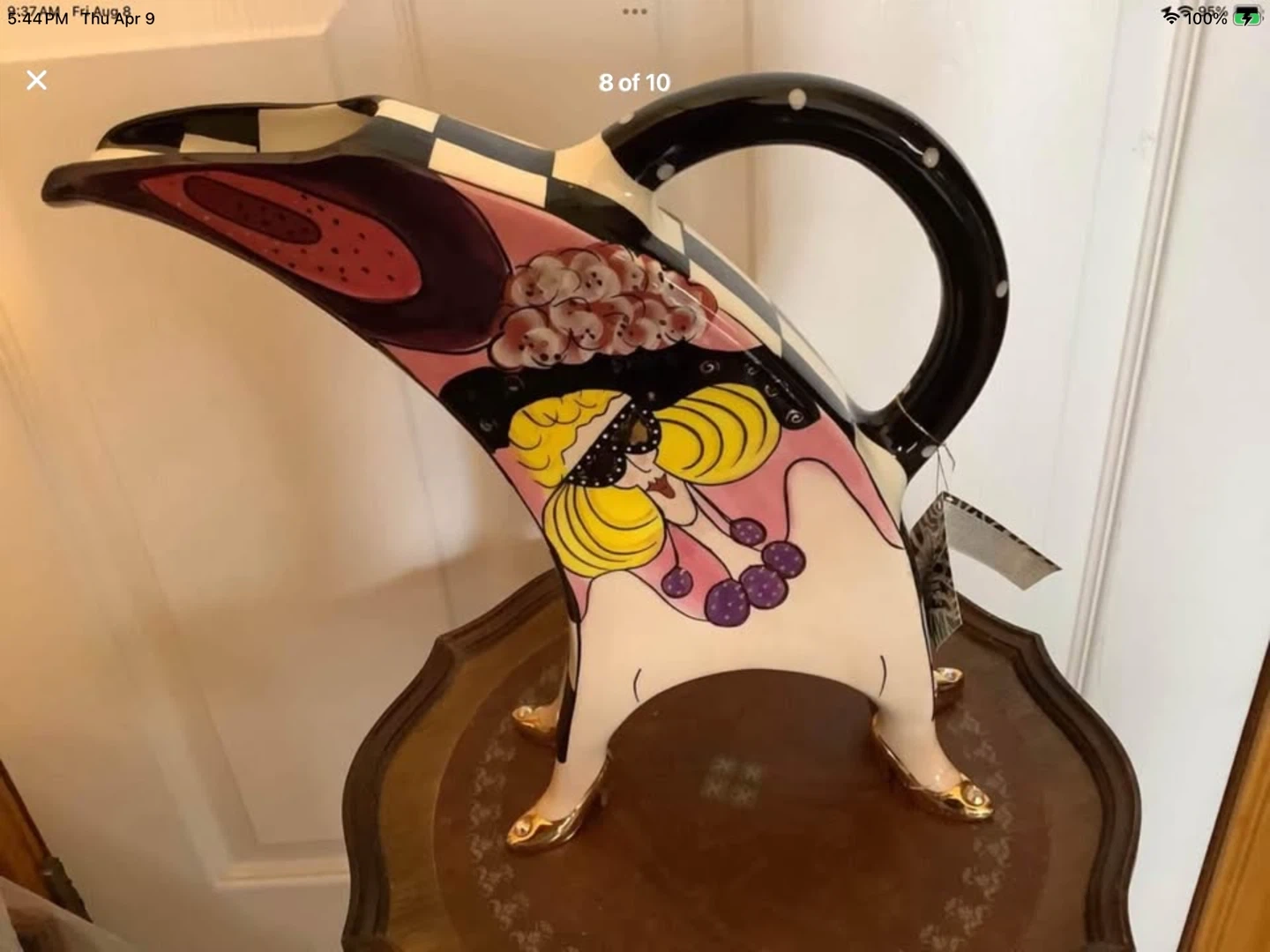 Aunt Gertie’s hand crafted porcelain ice tea pitcher by the artist Lynda Corneille.