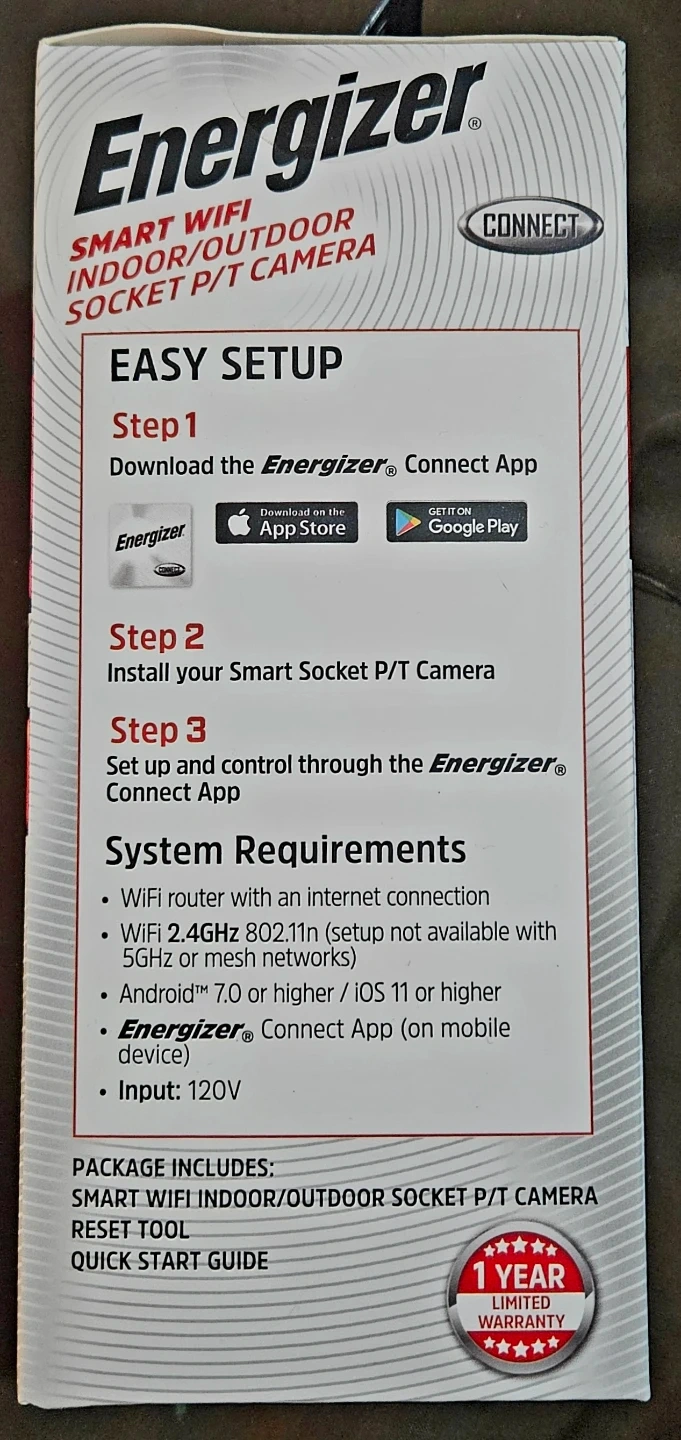 Selling a brand new Energizer Smart WiFi Indoor/Outdoor Socket P/T Camera! It is still in its original packaging.