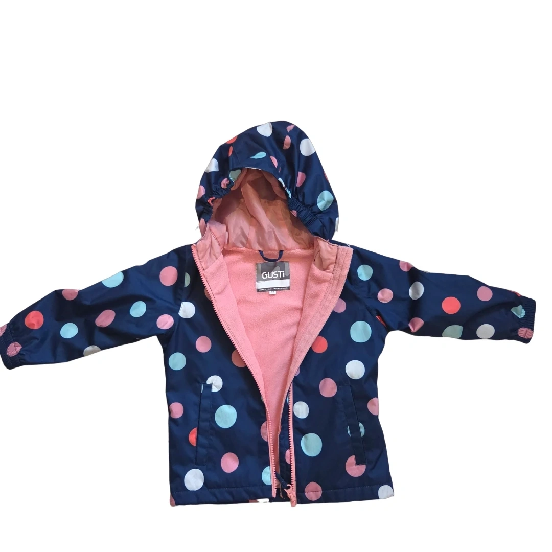 Adorable and practical Gusti 2-piece rain suit in size 3T, includes splash pants & waterproof jacket. Perfect for daycare, playground, and rainy spring/fall days. Worn once – in like new condition with no flaws!